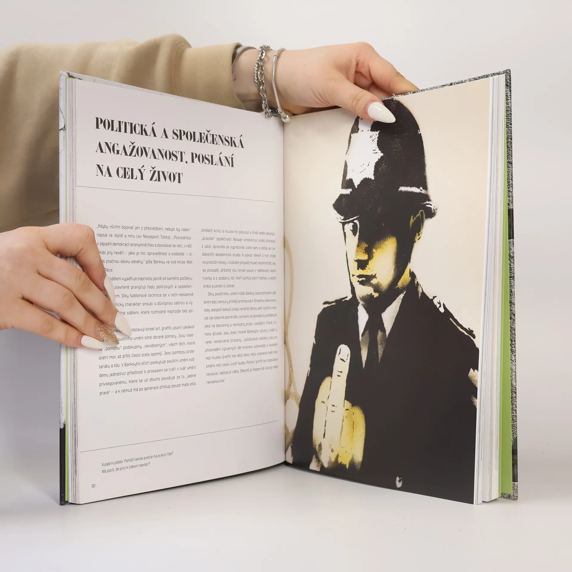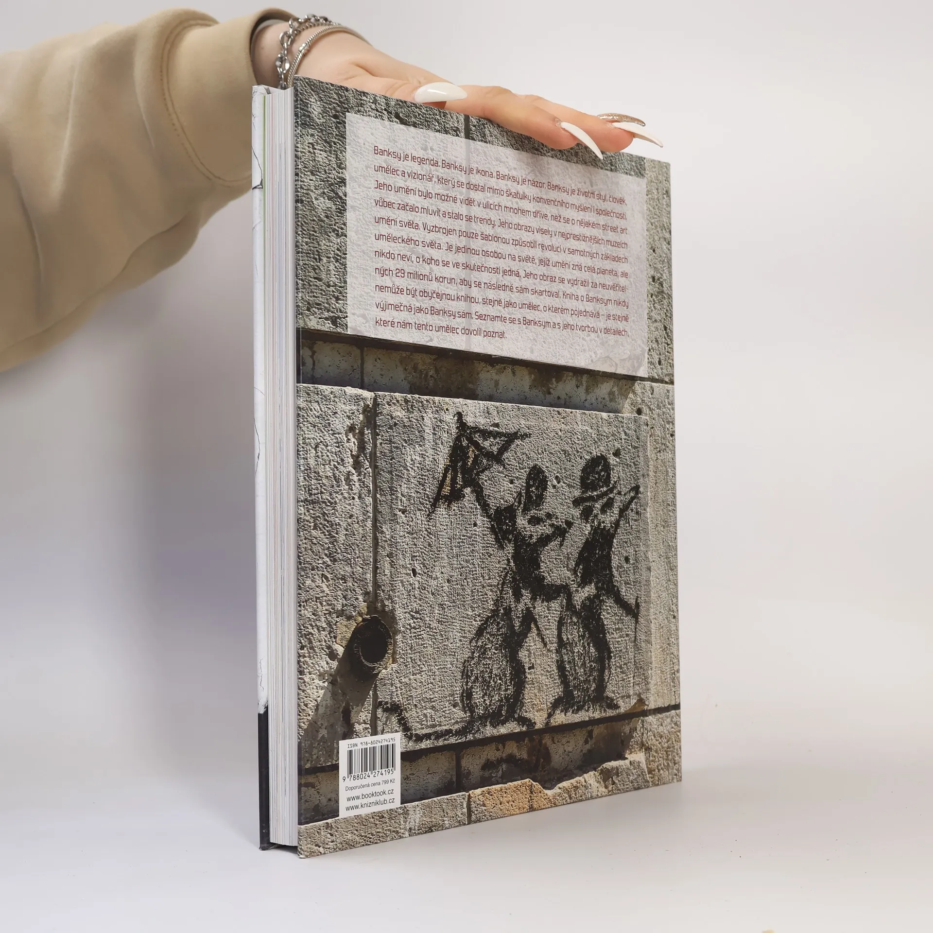 Banksy je legenda. Banksy je ikona. Banksy je názor. Banksy je životní styl, člověk, umělec a vizionář, který se dostal mimo škatulky konvenčního myšlení i společnosti. Jeho umění bylo možné vidět v ulicích mnohem dříve, než se o nějakém street art vůbec začalo mluvit a stalo se trendy. Jeho obrazy visely v nejprestižnějších muzeích umění světa. Vyzbrojen pouze šablonou způsobil revoluci v samotných základech uměleckého světa. Je jedinou osobou na světě, jejíž umění zná celá planeta, ale nikdo neví, o koho se ve skutečnosti jedná. Jeho obraz se vydražil za neuvěřitelných 29 milionů korun, aby se následně sám skartoval. Kniha o Banksym nikdy nemůže být obyčejnou knihou, stejně jako umělec, o kterém pojednává – je stejně výjimečná jako Banksy sám. Seznamte se s Banksym a s jeho uměním v detailech, které nám tento umělec dovolil poznat.