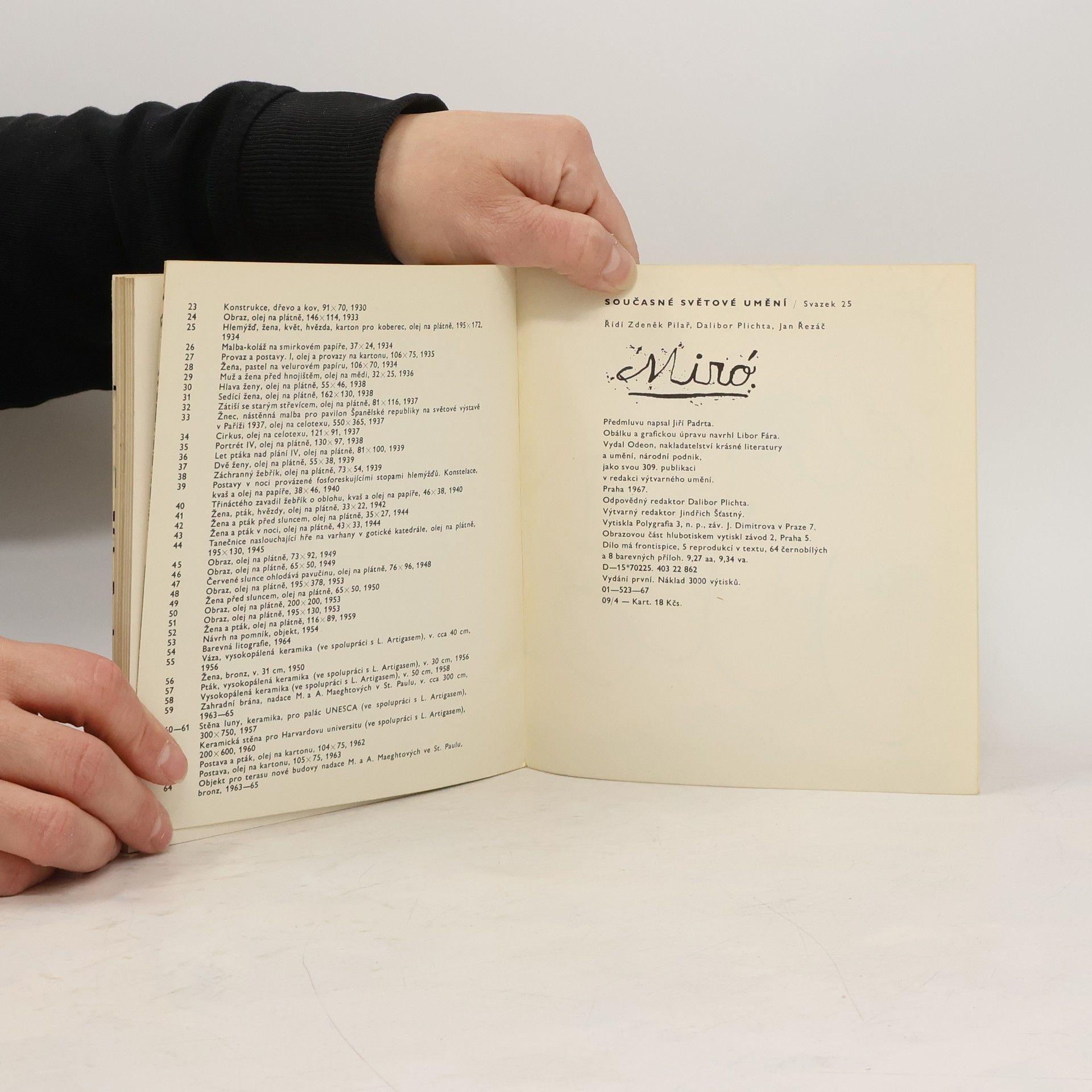 Úvodní studie, doprovázející obrazovou část, charakterizuje jednotlivé vývojové etapy malíře, jehož dílo patří ke stěžejním hodnotám moderního umění. Sleduje určující prvky jeho tvorby, poznamenané řadou překvapujících proměn ve formě, výrazu i technice, od poetického kubismu přes surrealismus až k poválečné tvorbě vzácné jednoduchosti. Miróova umělecká invence se však neomezuje jen na malířství, ale uplatňuje se i v grafice, sochařství a keramice, znížhlavně obě keramické stěny patří k význačným projevům monumentálního umění 20. století.