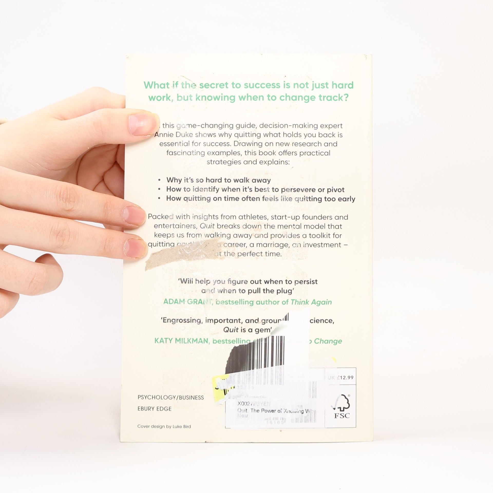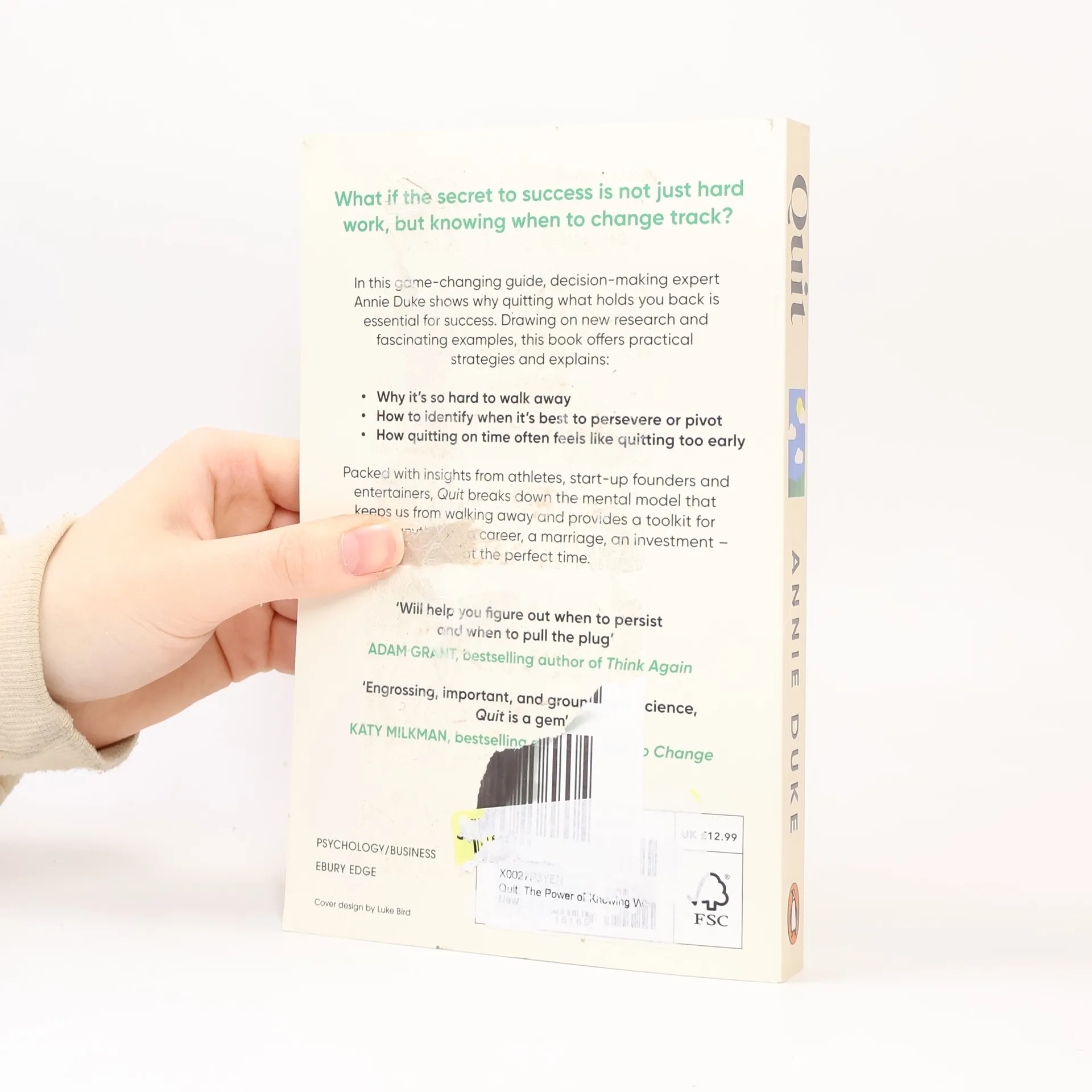 'Brilliant and entertaining' Daniel Kahneman | 'Quit what you are doing right now and read this' Richard Thaler | 'Engrossing, important, and grounded in science' Katy Milkman What if the secret to success is not just hard work, but knowing when to change track? In this game-changing guide, decision-making expert Annie Duke shows why quitting what holds you back is essential for success. Drawing on new research and fascinating examples, this book offers practical strategies and explains- Why it's so hard to walk away How to identify when it's best to persevere or pivot How quitting on time often feels like quitting too early Packed with insights from athletes, start-up founders and entertainers, Quit breaks down the mental model that keeps us from walking away and provides a toolkit for quitting anything - a career, a marriage, an investment - at the perfect time.