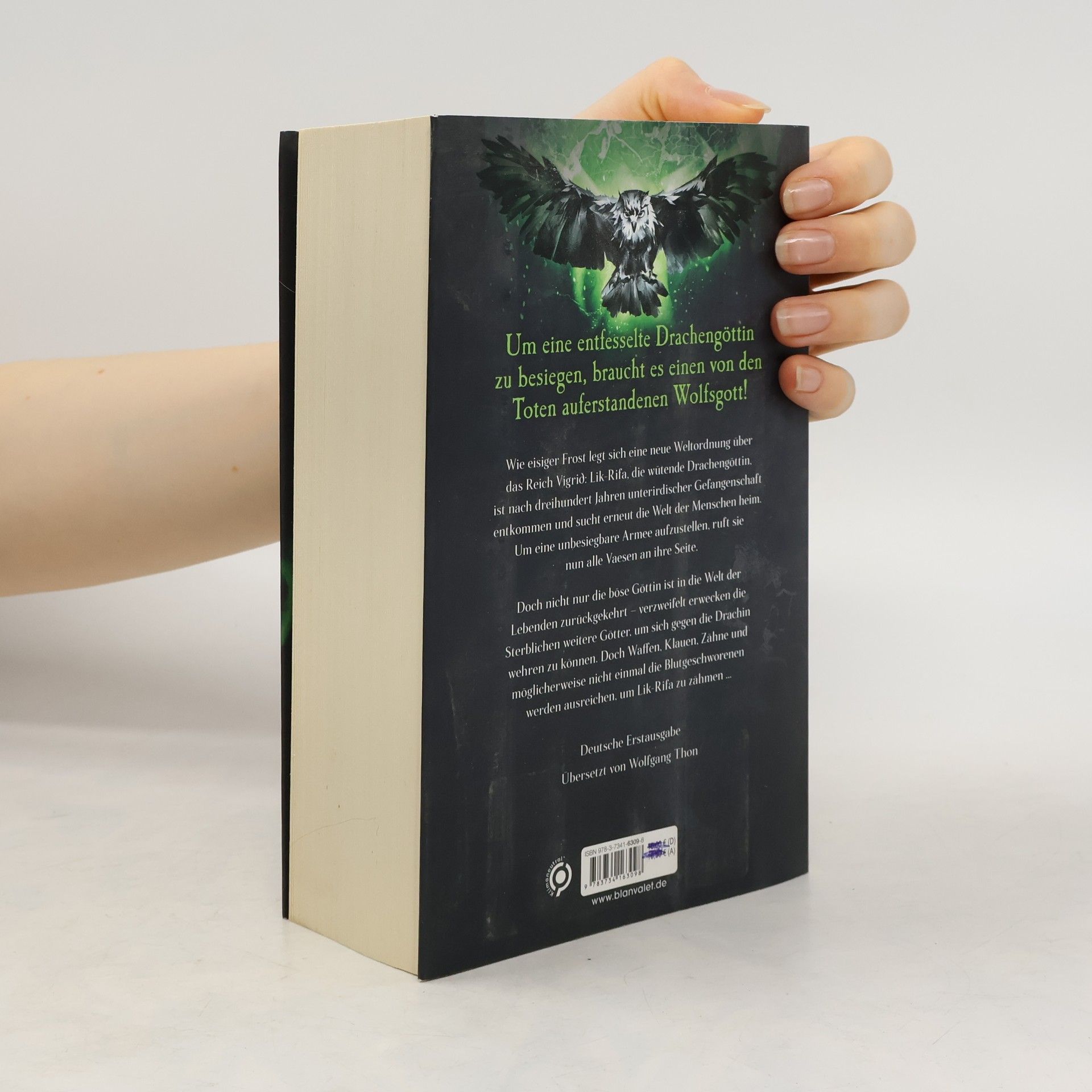Die Fortsetzung der großen nordischen Fantasy-Saga – noch nie waren Wikinger spannender! Wie eisiger Frost legt sich eine neue Weltordnung über das Reich Vigrið: Lik-Rifa, die wütende Drachengöttin, ist nach dreihundert Jahren unterirdischer Gefangenschaft auferstanden und sucht erneut die Welt der Menschen heim. Um eine unbesiegbare Armee aufzustellen, ruft sie nun alle Vaesen an ihre Seite. Doch nicht nur die böse Göttin ist ins Leben zurückgekehrt – verzweifelt erwecken die Sterblichen weitere Götter, um sich gegen die Drachin wehren zu können. Waffen, Klauen, Zähne und möglicherweise nicht einmal die Blutgeschworenen werden ausreichen, um Lik-Rifa zu zähmen ... Alle Bänder der Saga der Blutgeschworenen: Nordnacht Frostnacht Blutnacht (in Vorbereitung)