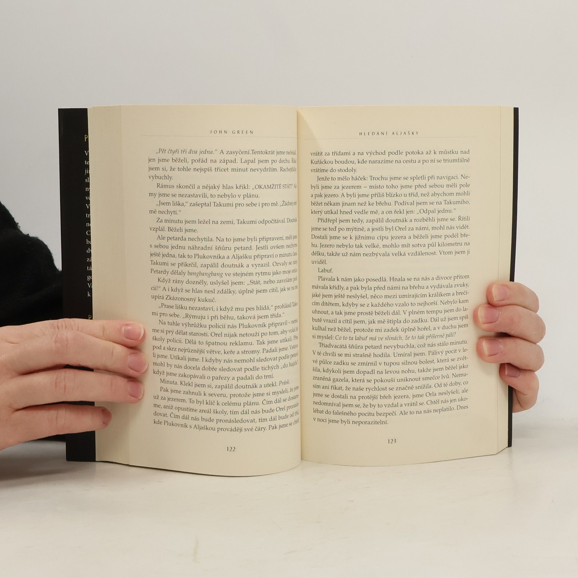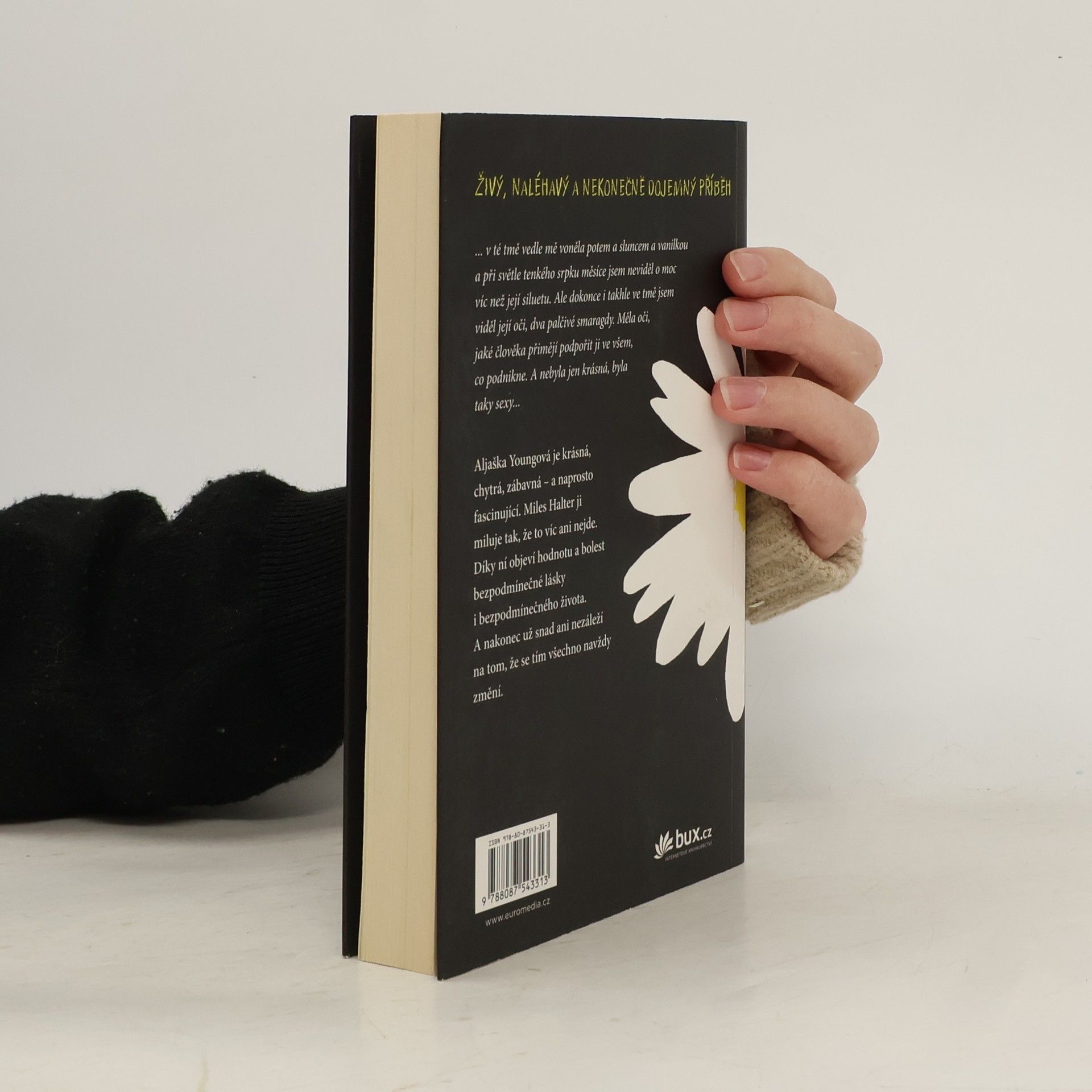 Románový debut dnes už známého Johna Greena je strhujícím vyprávěním o dospívání a hledání sama sebe. Šestnáctiletý Miles, posedlý sbíráním posledních slov významných osobností a touhou hledat „velké Možná“, je spíše outsiderem mezi svými vrstevníky. Jeho život získá zcela novou podobu, když přejde na internátní školu Culver Creek. Zde se rychle spřátelí se svérázným spolubydlícím a okouzlující, naprosto nepředvídatelnou Aljaškou Youngovou. Okamžitě je vtažen do světa, kde se porušují školní pravidla, pořádají různé večírky i provokace. Miles ožívá v dennodenním kontaktu s novými kamarády a stále víc miluje fascinující Aljašku. A tak vývoj směřuje k okamžiku, kdy se všechno nečekaně navždy změní... Živý, naléhavý a nekonečně dojemný příběh. Americkou knihovnickou asociací byl zařazen mezi deset nejlepších knih pro dospívající.