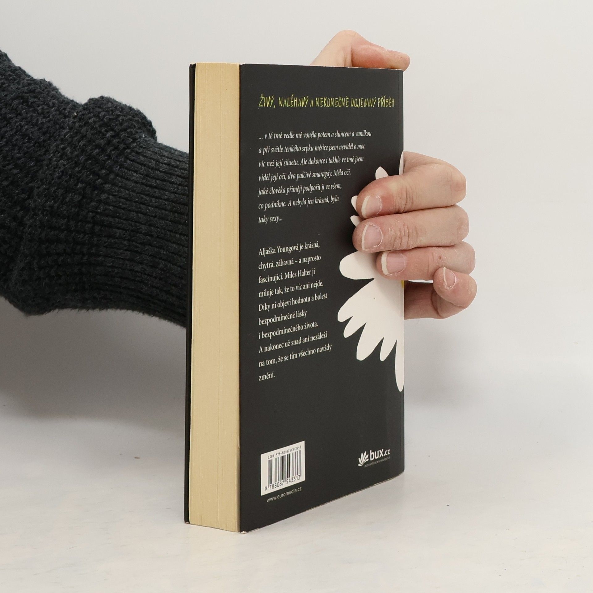 Románový debut dnes už známého Johna Greena je strhujícím vyprávěním o dospívání a hledání sama sebe. Šestnáctiletý Miles, posedlý sbíráním posledních slov významných osobností a touhou hledat „velké Možná“, je spíše outsiderem mezi svými vrstevníky. Jeho život získá zcela novou podobu, když přejde na internátní školu Culver Creek. Zde se rychle spřátelí se svérázným spolubydlícím a okouzlující, naprosto nepředvídatelnou Aljaškou Youngovou. Okamžitě je vtažen do světa, kde se porušují školní pravidla, pořádají různé večírky i provokace. Miles ožívá v dennodenním kontaktu s novými kamarády a stále víc miluje fascinující Aljašku. A tak vývoj směřuje k okamžiku, kdy se všechno nečekaně navždy změní... Živý, naléhavý a nekonečně dojemný příběh. Americkou knihovnickou asociací byl zařazen mezi deset nejlepších knih pro dospívající.