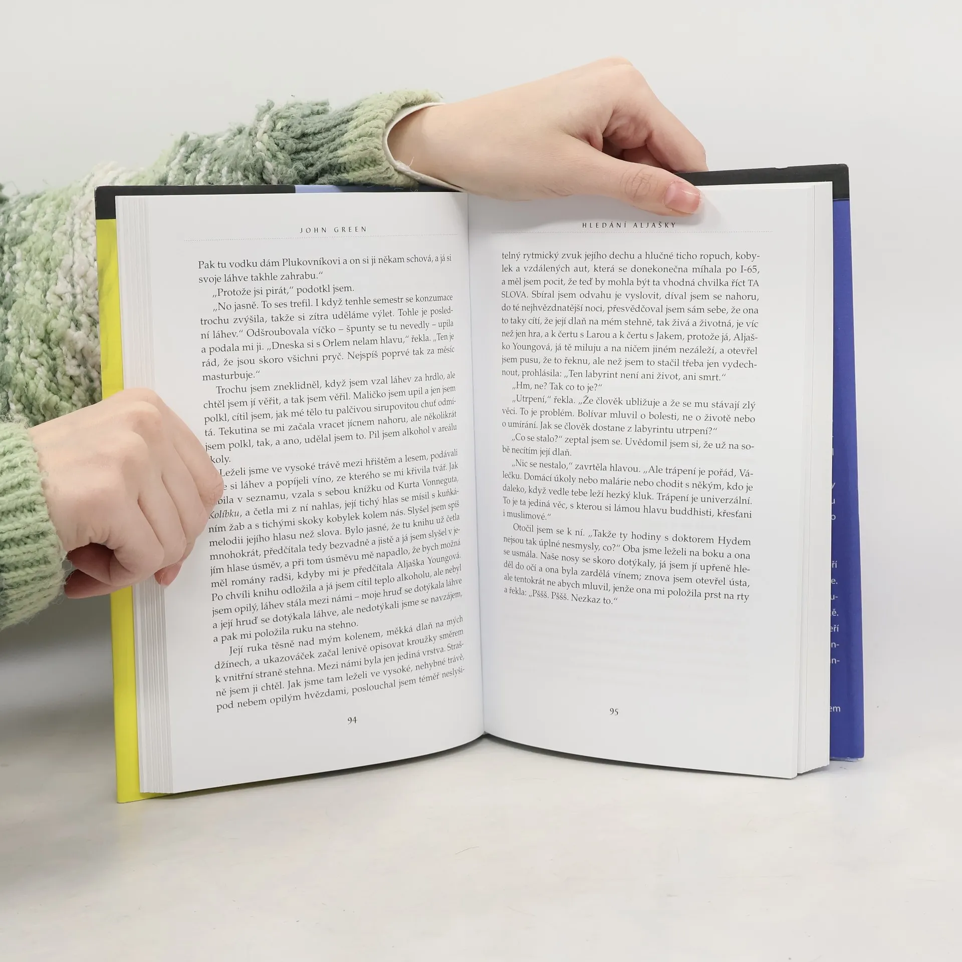 Románový debut dnes už známého Johna Greena je strhujícím vyprávěním o dospívání a hledání sama sebe. Šestnáctiletý Miles, posedlý sbíráním posledních slov významných osobností a touhou hledat „velké Možná“, je spíše outsiderem mezi svými vrstevníky. Jeho život získá zcela novou podobu, když přejde na internátní školu Culver Creek. Zde se rychle spřátelí se svérázným spolubydlícím a okouzlující, naprosto nepředvídatelnou Aljaškou Youngovou. Okamžitě je vtažen do světa, kde se porušují školní pravidla, pořádají různé večírky i provokace. Miles ožívá v dennodenním kontaktu s novými kamarády a stále víc miluje fascinující Aljašku. A tak vývoj směřuje k okamžiku, kdy se všechno nečekaně navždy změní... Živý, naléhavý a nekonečně dojemný příběh. Americkou knihovnickou asociací byl zařazen mezi deset nejlepších knih pro dospívající.