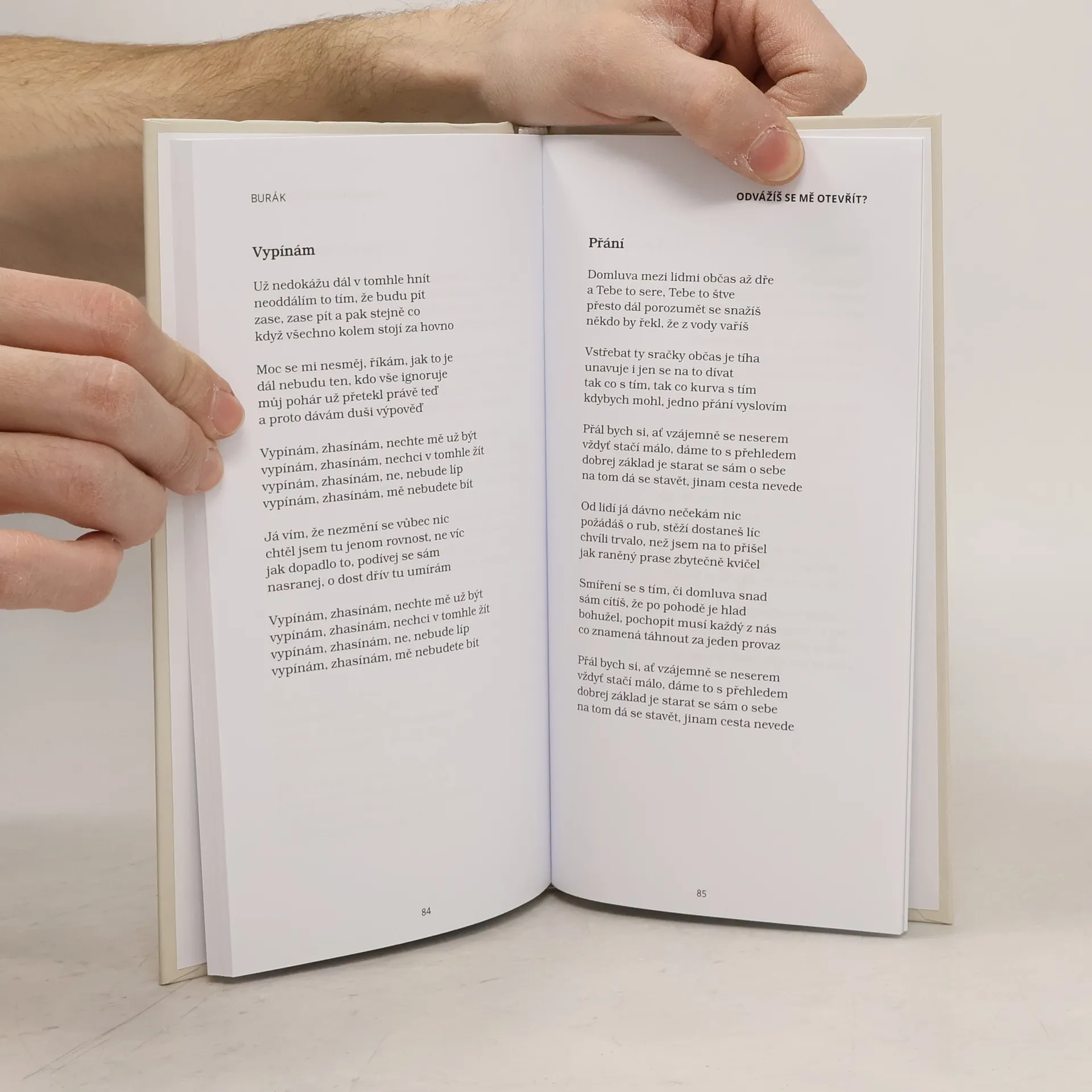 Druhá knižní sbírka současného autora přináší verše, jejichž cílem je čtenáře jak pobavit, tak i přivést k zamyšlení. Stačí jen odvážit se otevřít tuto knihu... Otevřít se v životě dá leccos... Kniha, láhev, něčí srdce... Vždy to chce odvahu. Podobně jako každá cesta začíná prvním krokem a následně začíná dobrodružství, tak i otevřením čehokoliv se rozjede pomyslný vlak. Otevřeně debatujeme, rozčilujeme se, ale i si dáváme najevo lásku, soucit, porozumění. Vždy to všechno nějak dopadne, když ne dobře, špatně určitě. Nakladatelská anotace.