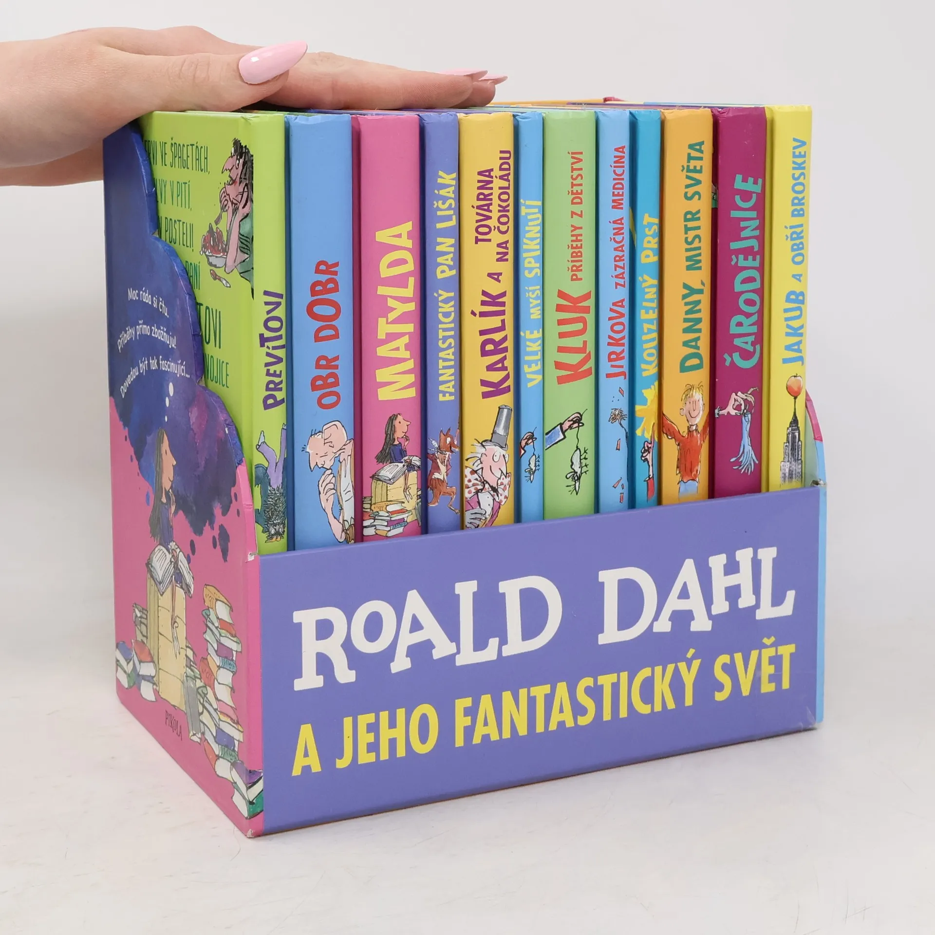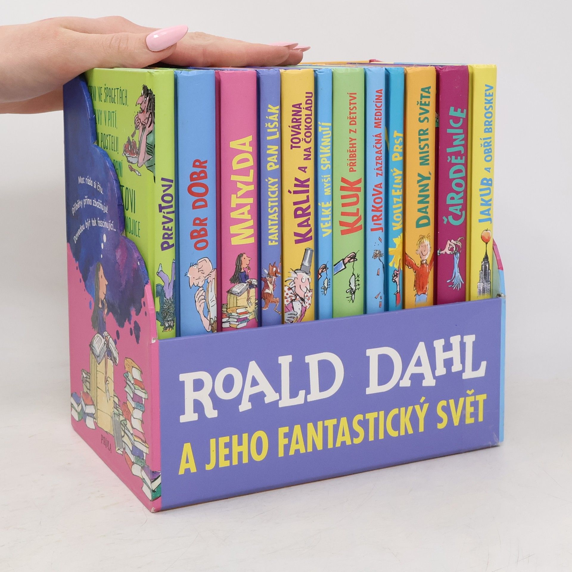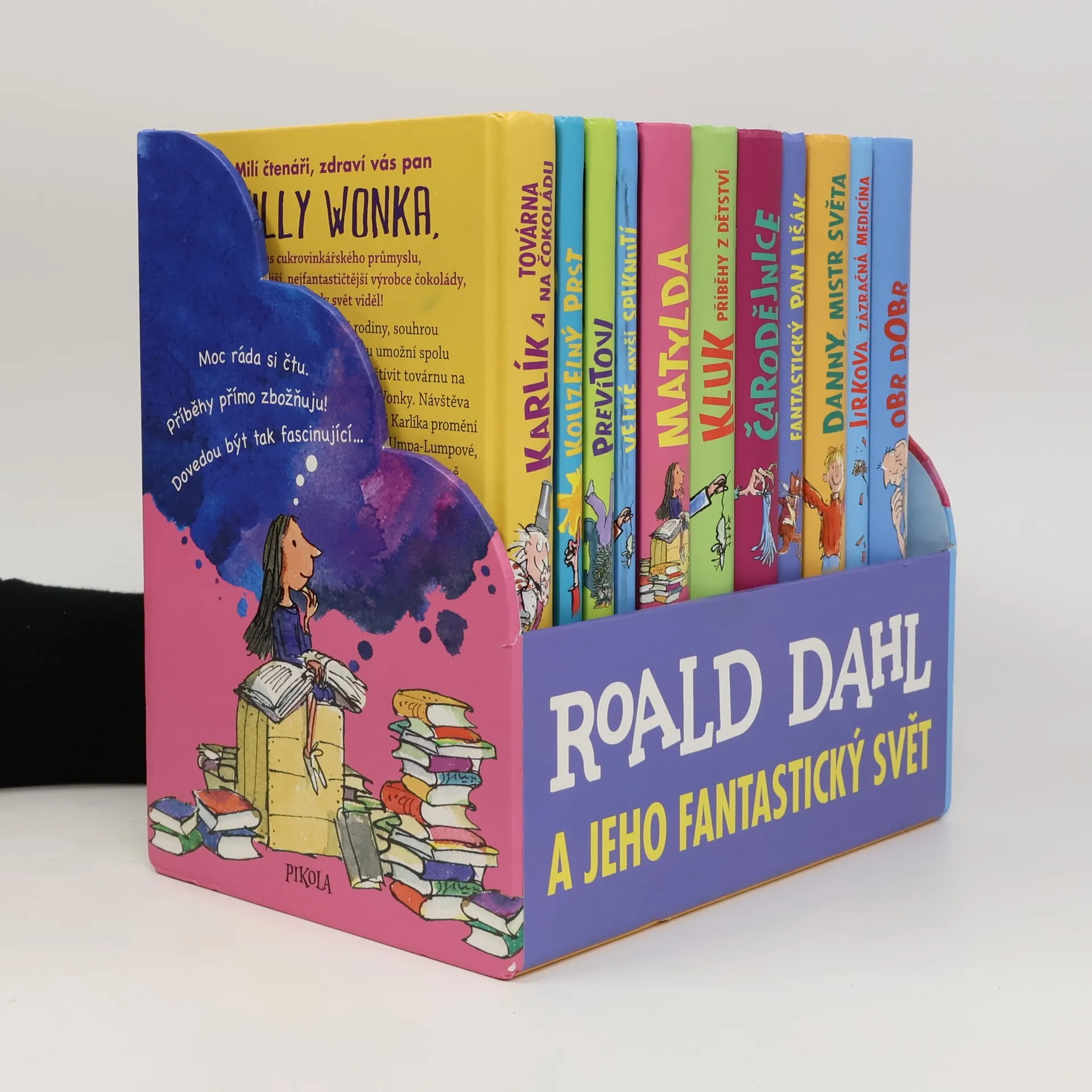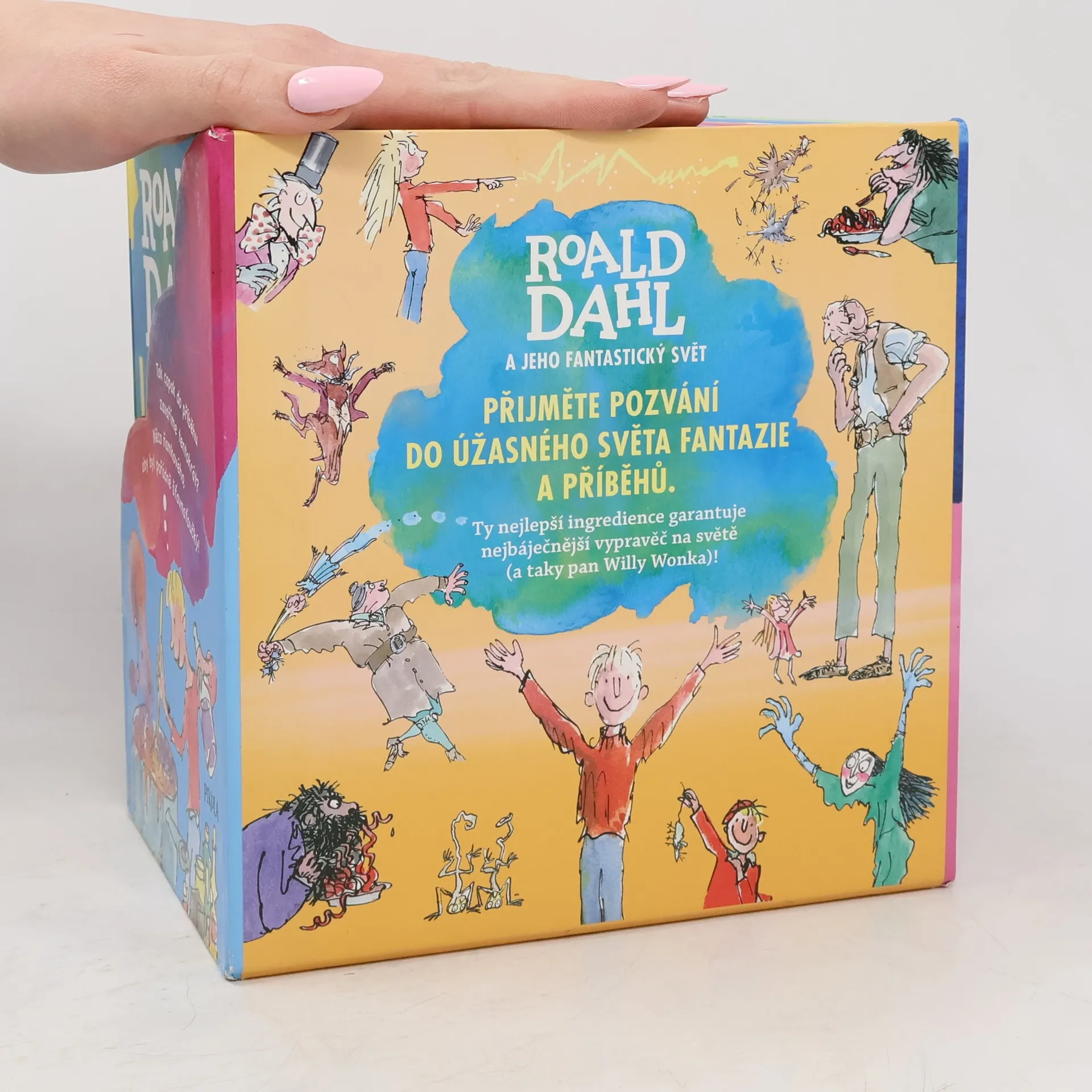 Přijměte pozvání do úžasného světa fantazie a příběhů. Ty nejlepší ingredience garantuje nejbáječnější vypravěč na světě (a taky pan Willy Wonka)! Knihy Roalda Dahla milují děti po celém světě. Nádherně vyvedený komplet obsahuje 12 nejoblíbenějších příběhů. Představte si Matyldu, Karlíka, Jirku, Dannyho, Obra Dobra, pana Lišáka, Jakuba se Stonožníkem a Žížalákem a další úžasné kamarády všechny pohromadě. To je ten nejbáječnější sen, co se vám může zdát!