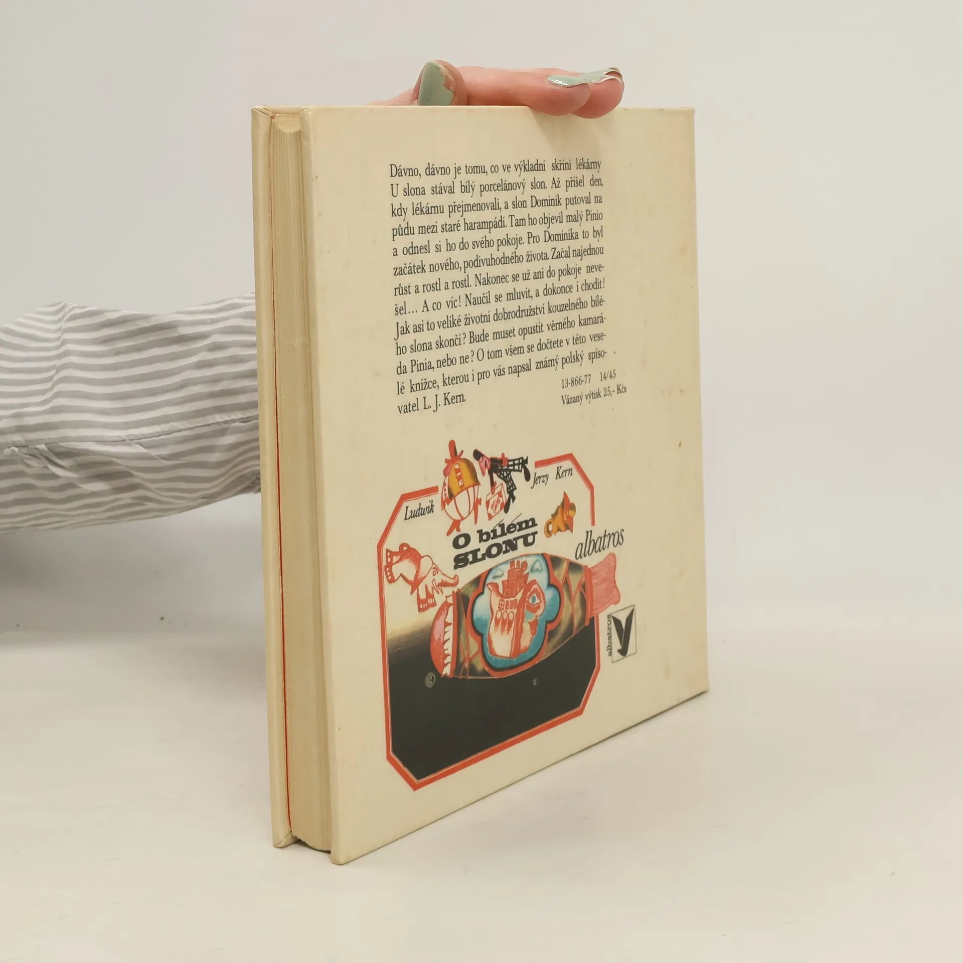 Dávno, dávno je tomu, co ve výkladní skříni lékárny U slona stával bílý porcelánový slon. Až přišel den, kdy lékárnu přejmenovali, a slon Dominik putoval na půdu mezi staré harampádí. Tam ho objevil malý Pinio a odnesl si ho do svého pokoje. Pro Dominika to byl začátek nového, podivuhodného života. Začal najednou růst a rostl a rostl. Nakonec se už ani do pokoje nevešel... A co víc! Naučil se mluvit, a dokonce i chodit! Jak asi to veliké životní dobrodružství kouzelného bílého slona skončí? Bude muset opustit věrného kamaráda Pinia, nebo ne? O tom všem se dočtete v této veselé knížce, kterou i pro vás napsal známý polský spisovatel L. J. Kern.