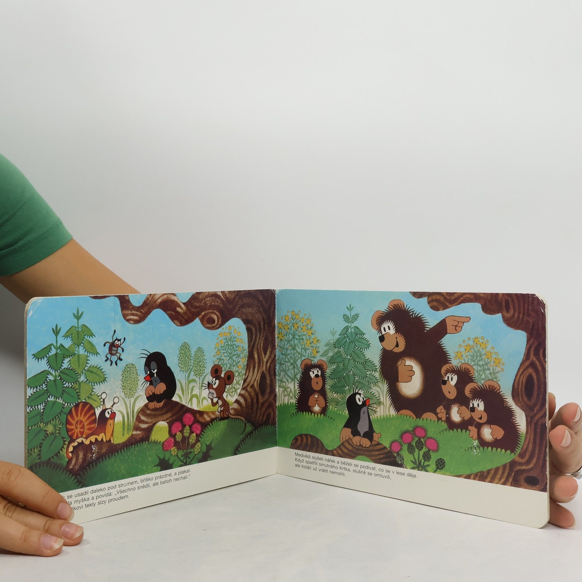 Příběh medvědí rodinky a oblíbeného krtečka. Ilustrované leporelo pro předškolní děti.