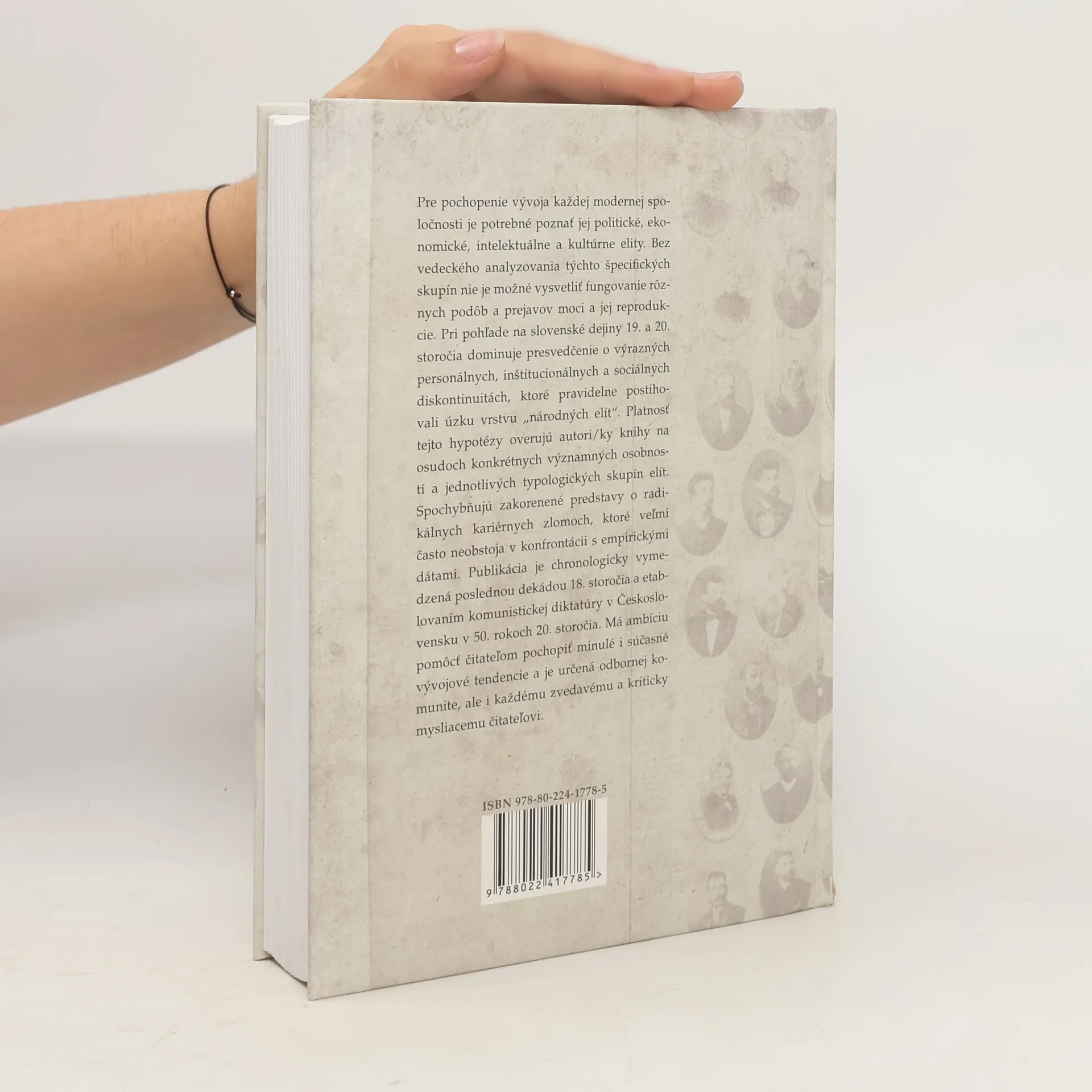 Pre pochopenie vývoja každej modernej spoločnosti je potrebné poznať jej politické, ekonomické, intelektuálne a kultúrne elity. Bez vedeckého analyzovania týchto špecifických skupín nie je možné vysvetliť fungovanie rôznych podôb a prejavov moci a jej reprodukcie. Pri pohľade na slovenské dejiny 19. a 20 storočia dominuje presvedčenie o výrazných personálnych, inštitucionálnych a sociálnych diskontinuitách, ktoré pravidelne postihovali úzku vrstvu „národných elít“. Platnosť tejto hypotézy overujú autori/ky knihy na osudoch konkrétnych významných osobností a jednotlivých typologických skupín elít. Spochybňujú zakorenené predstavy o radikálnych kariérnych zlomoch, ktoré veľmi často neobstoja v konfrontácii s empirickými dátami. Publikácia je chronologicky vymedzená poslednou dekádou 18. storočia a etablovaním komunistickej diktatúry v Československu v 50. rokoch 20. storočia. Má ambíciu pomôcť čitateľom pochopiť minulé i súčasné vývojové tendencie a je určená odbornej komunite, ale i každému zvedavému a kriticky mysliacemu čitateľovi.