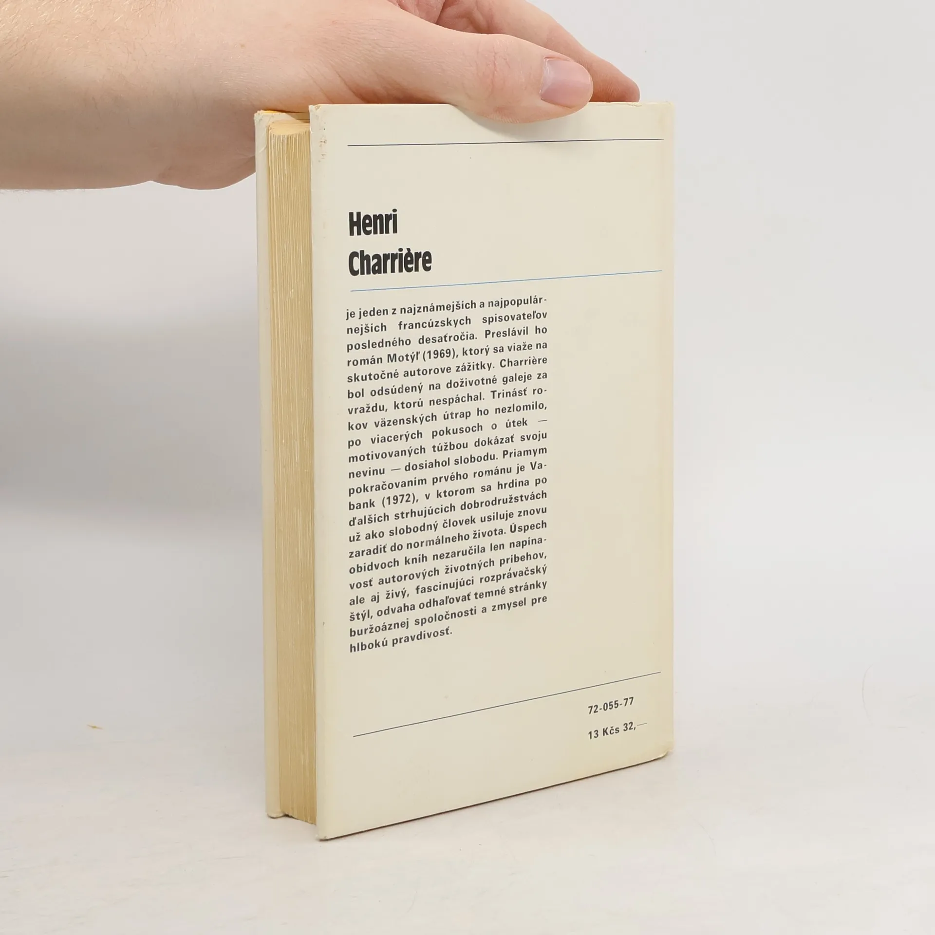Henri Charriére je jeden z najznámejších a najpopulárnejších francúzskych spisovateľov posledného desaťročia. Preslávil ho román Motýľ (1969), ktorý sa viaže na skutočné autorove zážitky. Charriére bol odsúdený na doživotné galeje za vraždu, ktorú nespáchal. Trinásť rokov väzenských útrap ho nezlomilo, po viacerých pokusoch o útek — motivovaných túžbou dokázať svoju nevinu — dosiahol slobodu. Priamym pokračovaním prvého románu je Vabank (1972), v ktorom sa hrdina po ďalších strhujúcich dobrodružstvách už ako slobodný človek usiluje znovu zaradiť do normálneho života. Úspech obidvoch kníh nezaručila len napínavosť autorových životných príbehov, ale aj živý, fascinujúci rozprávačský štýl, odvaha odhaľovať temné stránky buržoáznej spoločnosti a zmysel pre hlbokú pravdivosť.
