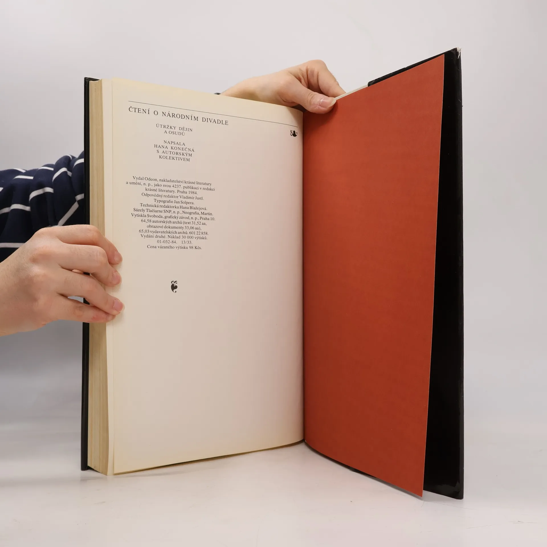 Útržky dějin Národního divadla od jeho vybudování, požár až do znovuotevření budovy po rekonstrukci. Osudy inscenací a hereckých osobností ND. Desítky obrazových ilustrací, kalendárium, jmenný rejstřík. Zpracoval autorský kolektiv Hana Konečná, Ljuba Klosová, Jaromír Paclt, Věra Ptáčková, Ivana Vadlejchová, Jindřich Černý, Václav Štěpán, Zina Trochová, Zdena Benešová, Jaroslav Krejčí. Velkoformátová publikace. 2. vydání
