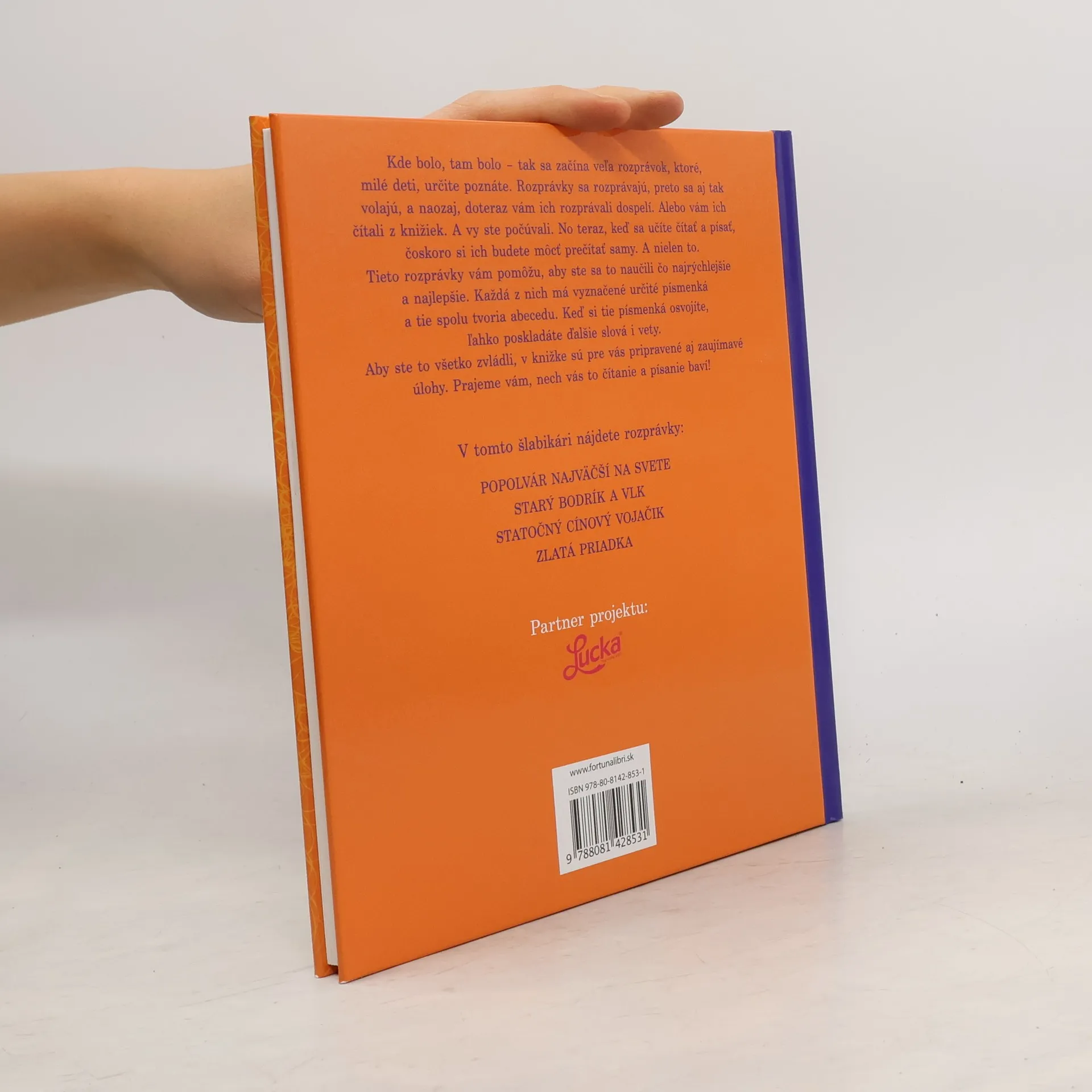 Kde bolo, tam bolo – tak sa začína veľa rozprávok, ktoré, milé deti, určite poznáte. Rozprávky sa rozprávajú, preto sa aj tak volajú, a naozaj, doteraz vám ich rozprávali dospelí. Alebo vám ich čítali z knižiek. A vy ste počúvali. No teraz, keď sa učíte čítať a písať, čoskoro si ich budete môcť prečítať samy. A nielen to. Tieto rozprávky vám pomôžu, aby ste sa to naučili čo najrýchlejšie a najlepšie. Každá z nich má vyznačené určité písmenká a tie spolu tvoria abecedu. Keď si tie písmenká osvojíte, ľahko poskladáte ďalšie slová i vety. Aby ste to všetko zvládli, v knižke sú pre vás pripravené aj zaujímavé úlohy. Prajeme vám, nech vás to čítanie a písanie baví! V tomto šlabikári nájdete rozprávky: Popolvár najväčší na svete, Starý Bodrík a vlk, Statočný cínový vojačik, Zlatá priadka