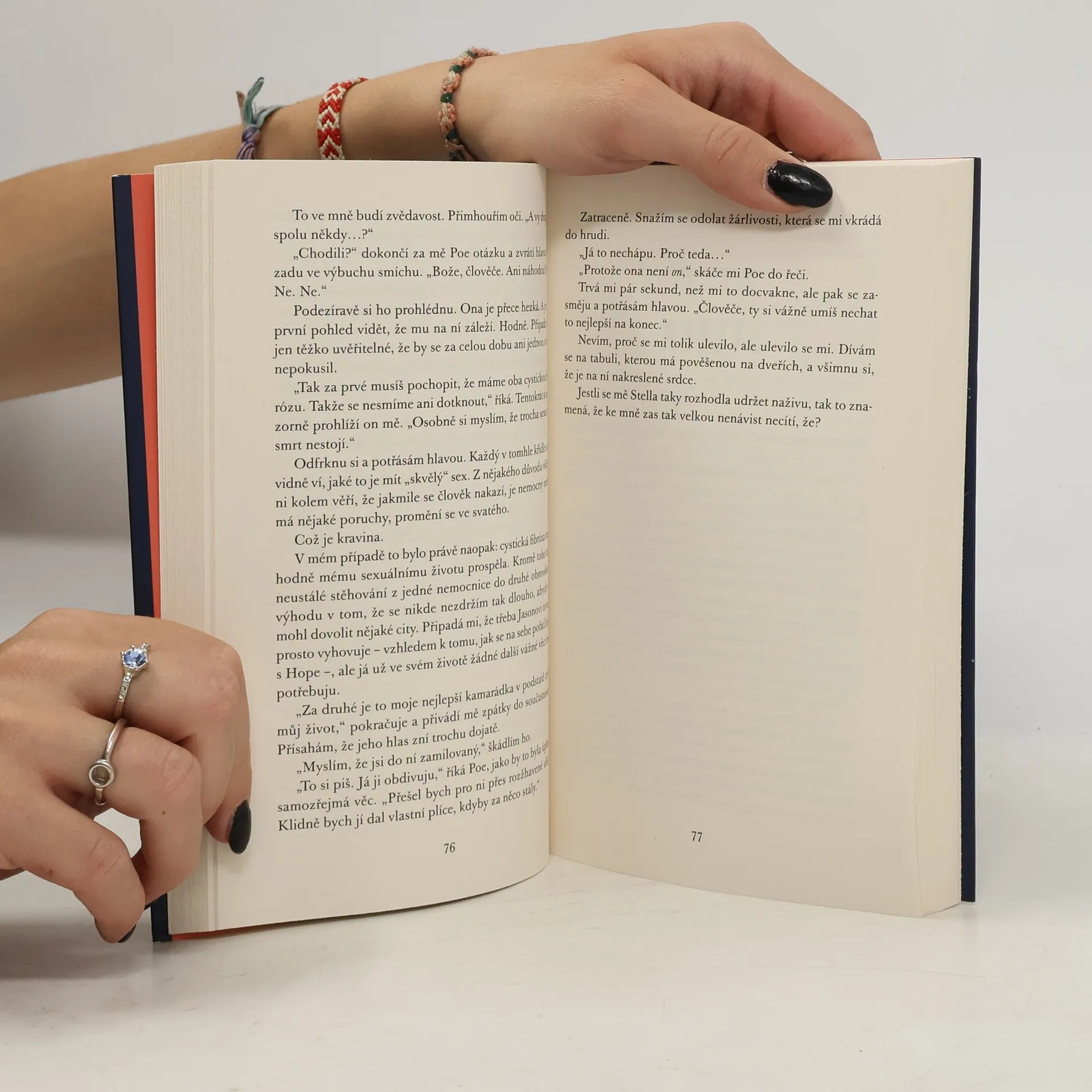 Stella Grantová má cystickou fibrózu a její kontakt s okolním světem je minimální. Aby neohrozila své šance na transplantaci, musí se chránit před kýmkoli a čímkoli, co by mohlo být nositelem infekce. Šest stop. To je vzdálenost, kterou musí dodržovat. Šest stop – bez výjimky. Willa Newmana léčba vůbec nezajímá. Každým dnem mu bude osmnáct a pak – sbohem, nemocnice. Vykašle se na léky a konečně si bude užívat života. Will je přesně tím, od koho by se Stella měla držet dál. Pokud se k němu přiblíží a nakazí se, mohla by přijít o své místo na seznamu čekatelů. Aby se tak nestalo, musí si držet odstup. Čím víc se ale s Willem sbližují, tím víc jim předepsaných šest stop začíná připadat jako trest. Jaké by to asi bylo, kdyby si pro sebe mohli ukrást trochu té svobody, kterou jim vzala jejich nemoc? Co by se stalo, kdyby zkrátili vzdálenost na pět stop?