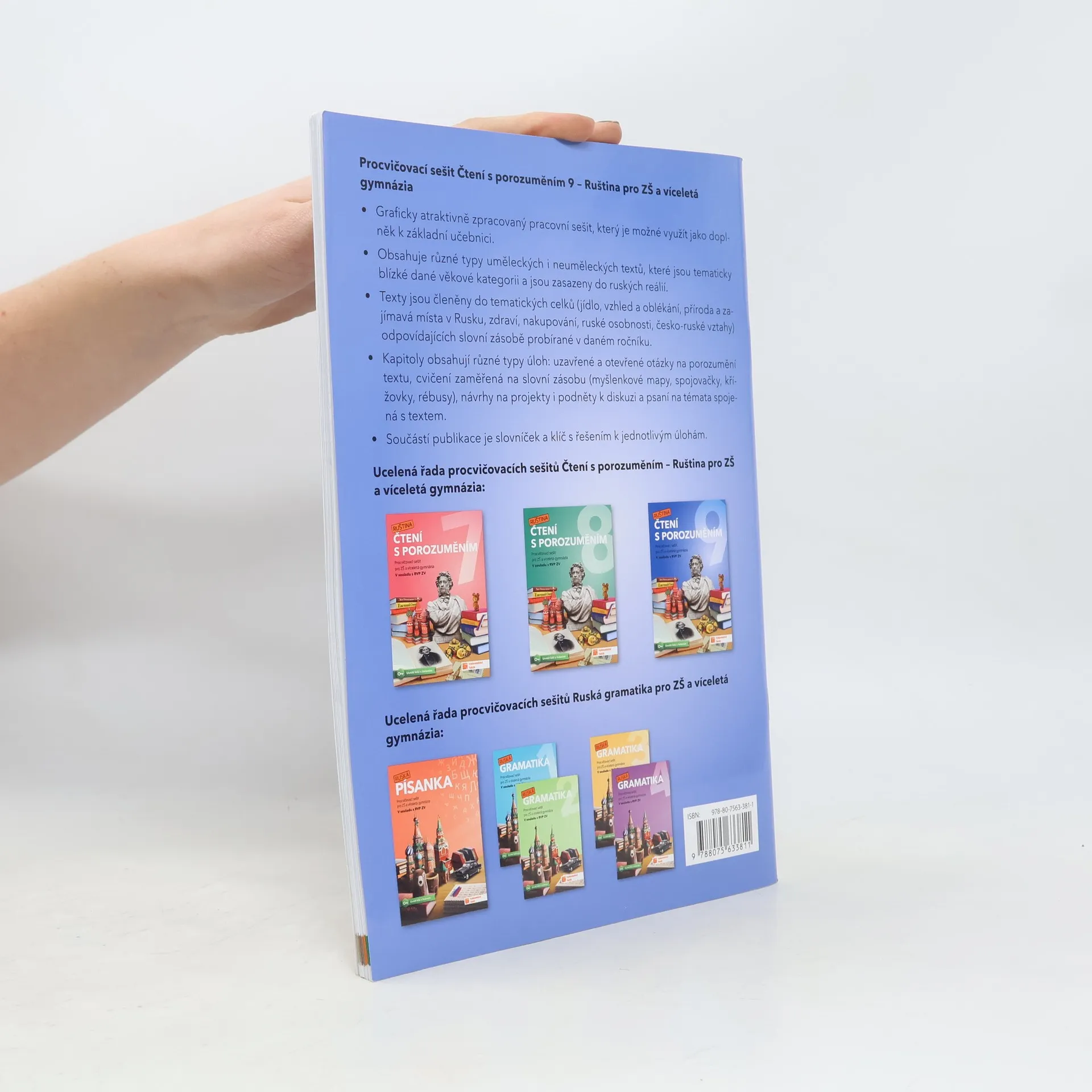 Nové publikace Čtení s porozuměním pro ZŠ a víceletá gymnázia (Ruština) jsou graficky atraktivně zpracované pracovní sešity, které je možné využít jako doplnění k základní učebnici. Obsahují různé typy uměleckých i neuměleckých textů, které jsou tematicky blízké dané věkové kategorii a jsou zasazeny do ruských reálií. Texty jsou členěny do tematických celků odpovídajících slovní zásobě probírané v daných ročnících. Kapitoly obsahují úlohy různých typů: uzavřené a otevřené otázky na porozumění textu, cvičení zaměřená na slovní zásobu (myšlenkové mapy, spojovačky, křížovky, rébusy), návrhy na projekty i podněty k diskuzi a psaní na témata spojená s textem. Součástí publikace je slovníček a klíč s řešením k jednotlivým úlohám.
