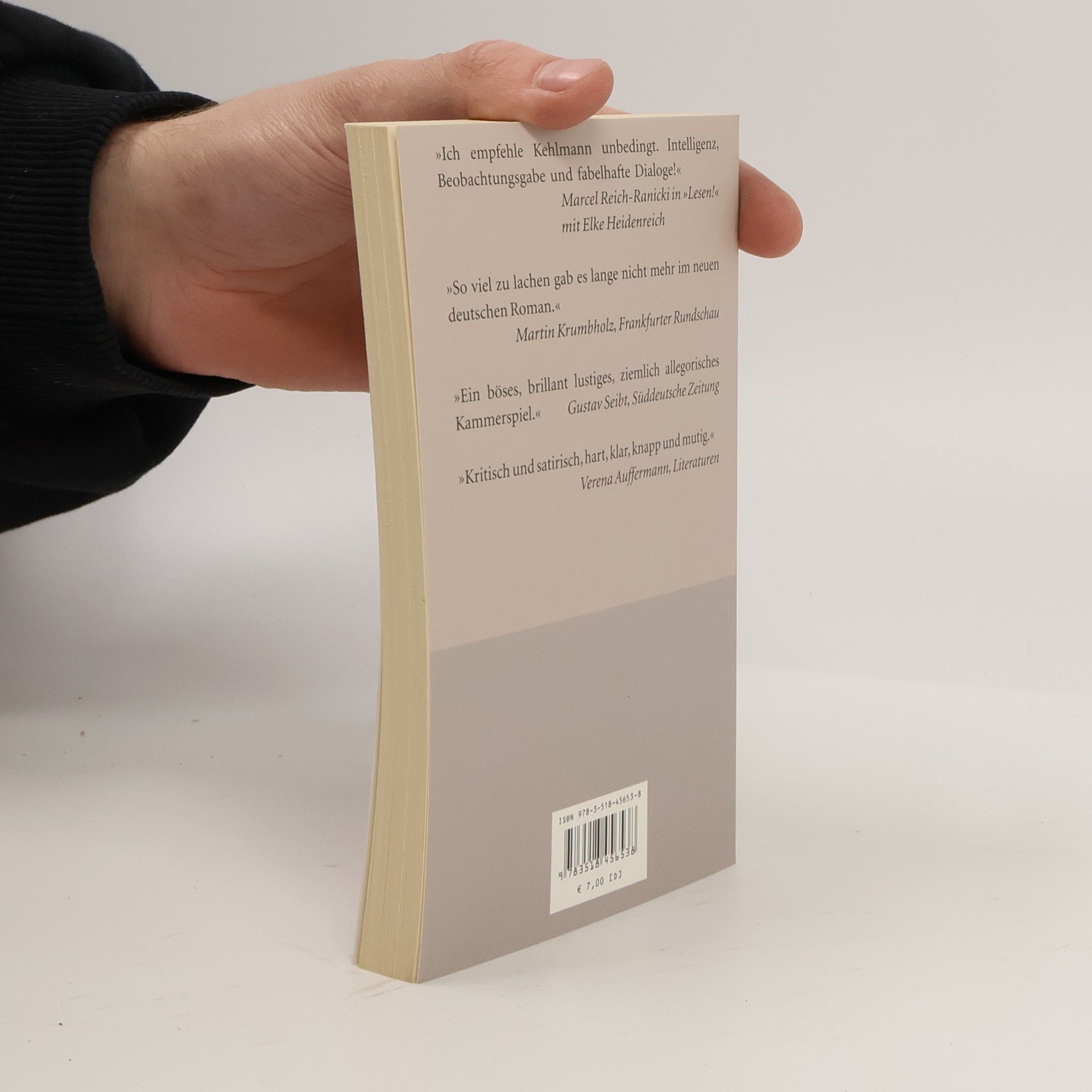 Mit kleineren Gelegenheitsarbeiten schlägt sich Sebastian Zöllner nach seinem Kunstgeschichtsstudium so durch, aber nun hat er einen ganz großen Fisch an der Angel: Er schreibt die Biographie des Malers Kaminski, der, entdeckt und gefördert einst von Matisse und Picasso, durch eine Pop-Art-Ausstellung, seine dunkle Brille und die Bildunterschrift „Painted by a blind man“ weltberühmt wurde. Inzwischen lebt Kaminski zurückgezogen in den Alpen und ist ein wenig in Vergessenheit geraten. Soll die Biographie noch rechtzeitig zum Ableben fertig werden, und dieser Termin lässt natürlich größere Aufmerksamkeit erwarten, dann ist Eile geboten. Zöllner, der zunächst mit alten Freunden und Feinden, mit Sammlern und Galeristen gesprochen hat, macht sich zum Objekt seiner Begierde auf den Weg, um exklusive O-Töne zu bekommen. Womit er nicht gerechnet hat: Kaminski ist abgeschirmt durch ein ganzes Heer von Vertrauten, und als es dem Biographen endlich trickreich gelingt, die Bewacher loszuwerden und den Maler auf eine tagelange Reise im Auto mitzunehmen, erkennt er, dass er dem Alten, blind oder auch nicht, in keiner Weise gewachsen ist. Daniel Kehlmann hat einen hochironischen Roman geschrieben, in dem die Ereignisse immer neue und überraschende Wendungen nehmen, ein brillant witziges Verwirrspiel um Lebenslügen und Wahrheit, um Manipulation, um Moral und Kunst.