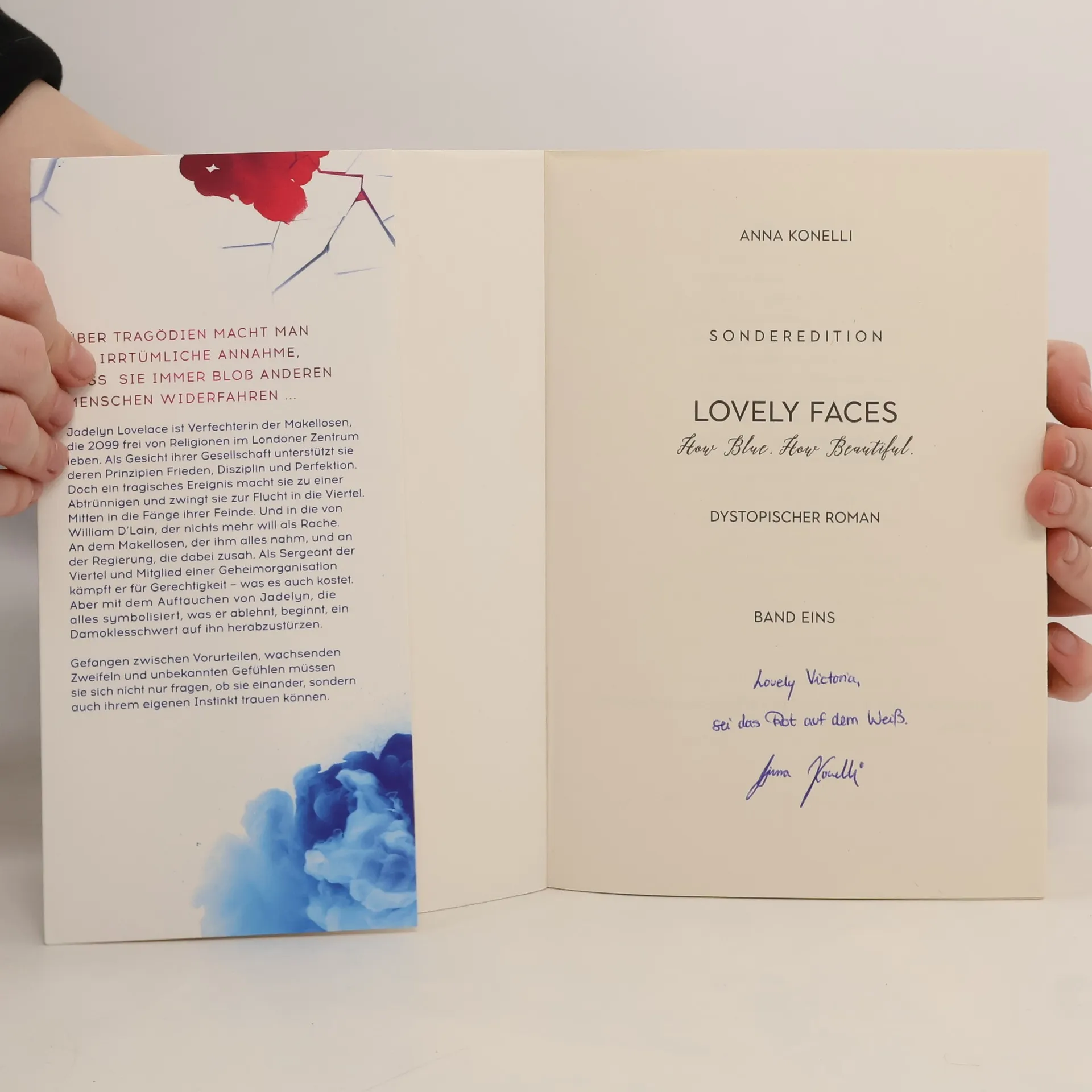 EINZIGARTIG. DÜSTER. HOFFNUNGSVOLL. DER AUFTAKT DER LOVELY FACES DILOGIE. London 2099: Die Welt hat sich verändert. Kriege sind Vergangenheit und die Makellosen gewährleisten Frieden mit allen Mitteln. Doch eine Tragödie bringt die perfekte Fassade zum Einsturz und die Grenzen zwischen richtig und falsch verschwimmen. Jadelyn Lovelace ist eine Verfechterin der Makellosen, die im Londoner Zentrum ein Leben ohne Religion führen. Als Gesicht ihrer Gesellschaft steht sie für Frieden, Disziplin und Perfektion. Doch ein tragisches Ereignis verwandelt sie in eine Abtrünnige und zwingt sie zur Flucht in die Viertel, wo sie in die Fänge ihrer Feinde gerät. William D'Lain, der nichts mehr als Rache will, steht ihr gegenüber. Als Sergeant der Viertel und Mitglied einer Geheimorganisation kämpft er für Gerechtigkeit, egal zu welchem Preis. Mit Jadelyn, die alles symbolisiert, was er ablehnt, wird sein Leben auf den Kopf gestellt. Gefangen zwischen Vorurteilen, wachsenden Zweifeln und unbekannten Gefühlen müssen sie sich fragen, ob sie einander und ihrem eigenen Instinkt trauen können. Die Geschichte entfaltet sich in einem düsteren, aber hoffnungsvollen Setting, das die Leser von der ersten Seite an fesselt und eine erschreckende Vision unserer Zukunft präsentiert.
