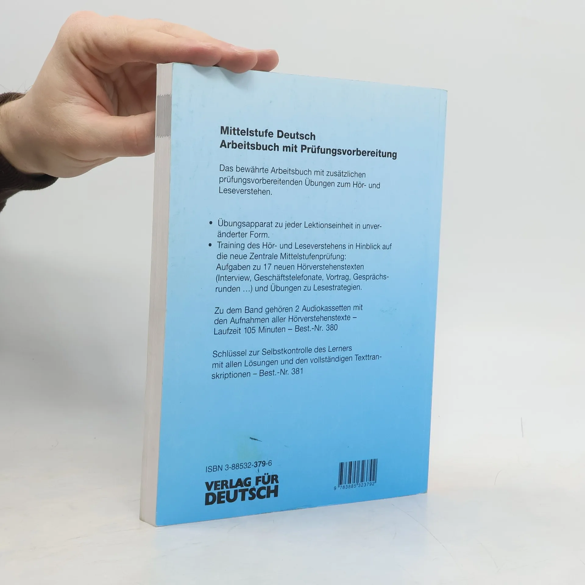 Enthält ergänzende Übungen zu allen Kapiteln des Lehrwerks, speziell zur Grammatik und zum Ausdruck. Zusätzliche "Übungen zur Prüfungsvorbereitung", schwerpunktmäßig zum Lese- und Hörverstehen, zur Textbearbeitung, zum mündlichen und schriftlichen Ausdruck, bereiten auf die Zentrale Mittelstufenprüfung vor.