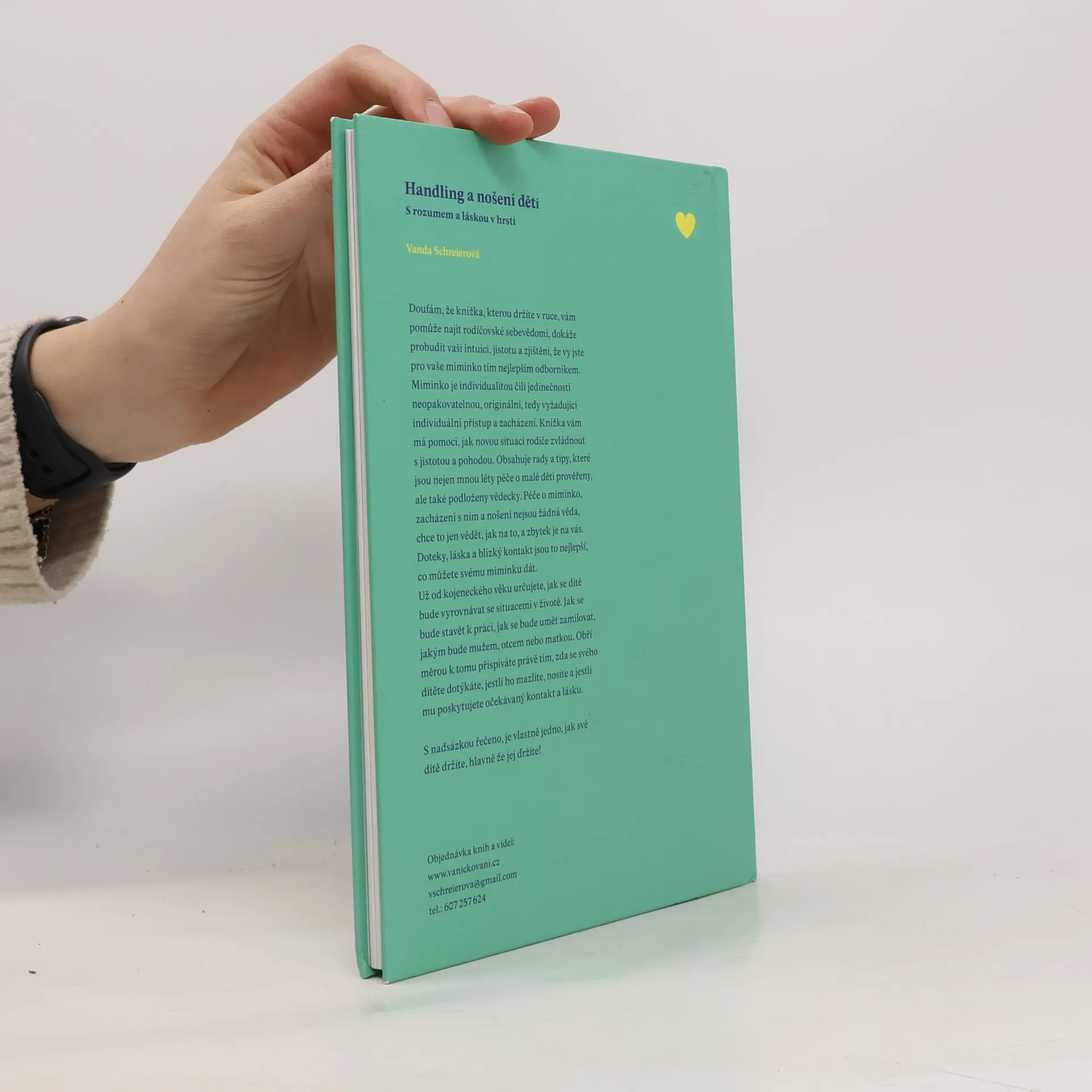 Zacházení s miminkem neboli handling - zcela přirozenou schopnost, kterou má každá milující matka v sobě, tzn. že umí intuitivně, tedy správně zvedat, nosit, oblékat, přebalovat své miminko. Toto laskavé a cituplné chování vůči dítěti lze těžko popsat slovy a Vanda Schreierová zvládá popis s lehkostí pomocí sledování pohybových schopností nejmenších dětí na principu znalostí vědeckého oboru kinestetiky.