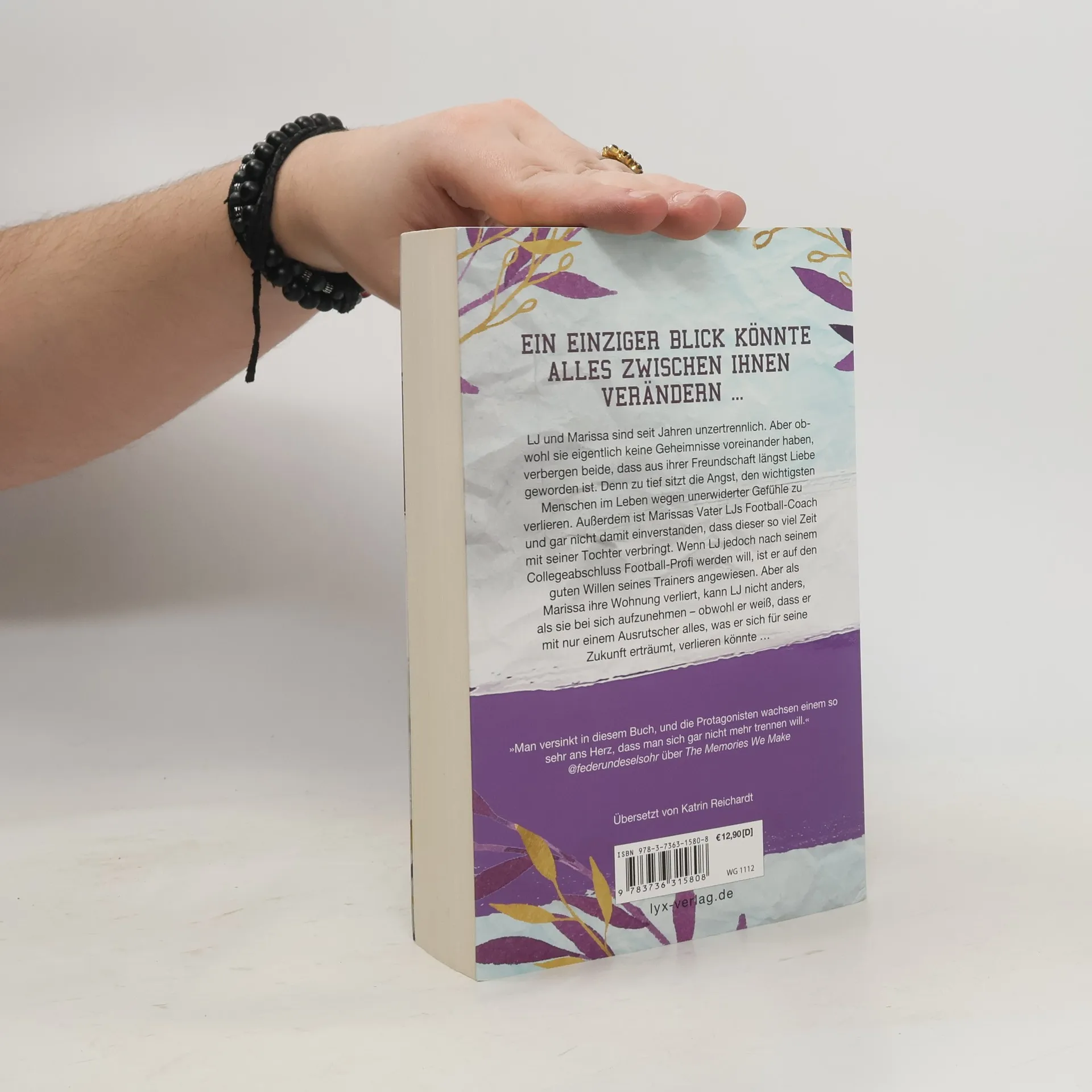 Ein einziger Blick könnte alles zwischen ihnen verändern ... LJ und Marisa sind seit Jahren unzertrennlich. Aber obwohl sie eigentlich keine Geheimnisse voreinander haben, verbergen beide, dass aus ihrer Freundschaft längst Liebe geworden ist. Denn zu tief sitzt die Angst, den wichtigsten Menschen im Leben wegen unerwiderter Gefühle zu verlieren. Außerdem ist Marisas Vater LJs Football-Coach und gar nicht damit einverstanden, dass dieser so viel Zeit mit seiner Tochter verbringt. Wenn LJ jedoch nach seinem Collegeabschluss Football-Profi werden will, ist er auf den guten Willen seines Trainers angewiesen. Aber als Marisa ihre Wohnung verliert, kann LJ nicht anders, als sie bei sich aufzunehmen - obwohl er weiß, dass er mit nur einem Ausrutscher alles, was er sich für seine Zukunft erträumt, verlieren könnte ... "Man versinkt in diesem Buch, und die Protagonisten wachsen einem so sehr ans Herz, dass man sich gar nicht mehr trennen will." @FEDERUNDESELSOHR über THE MEMORIES WE MAKE Band 4 der FULTON-UNIVERSITY-Reihe