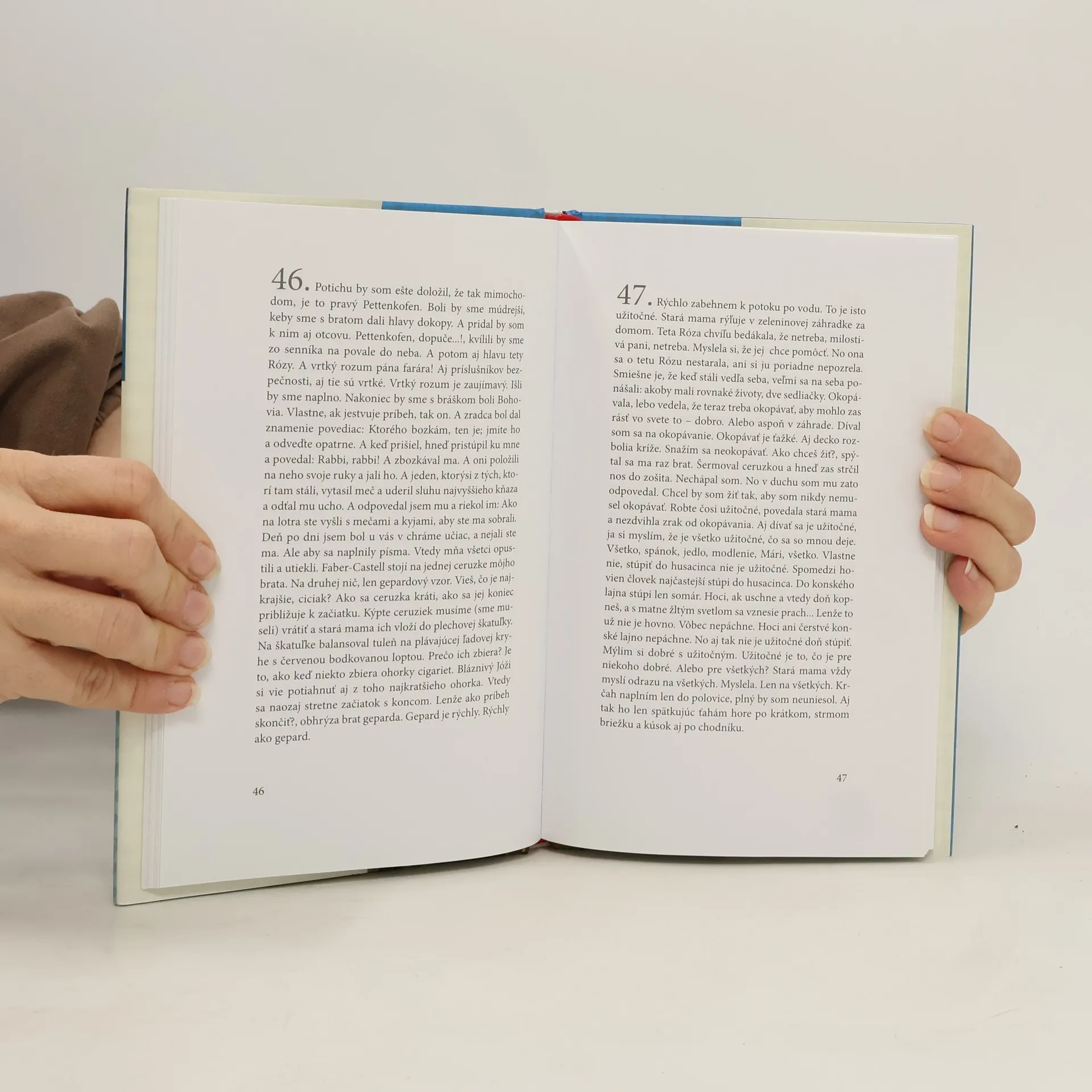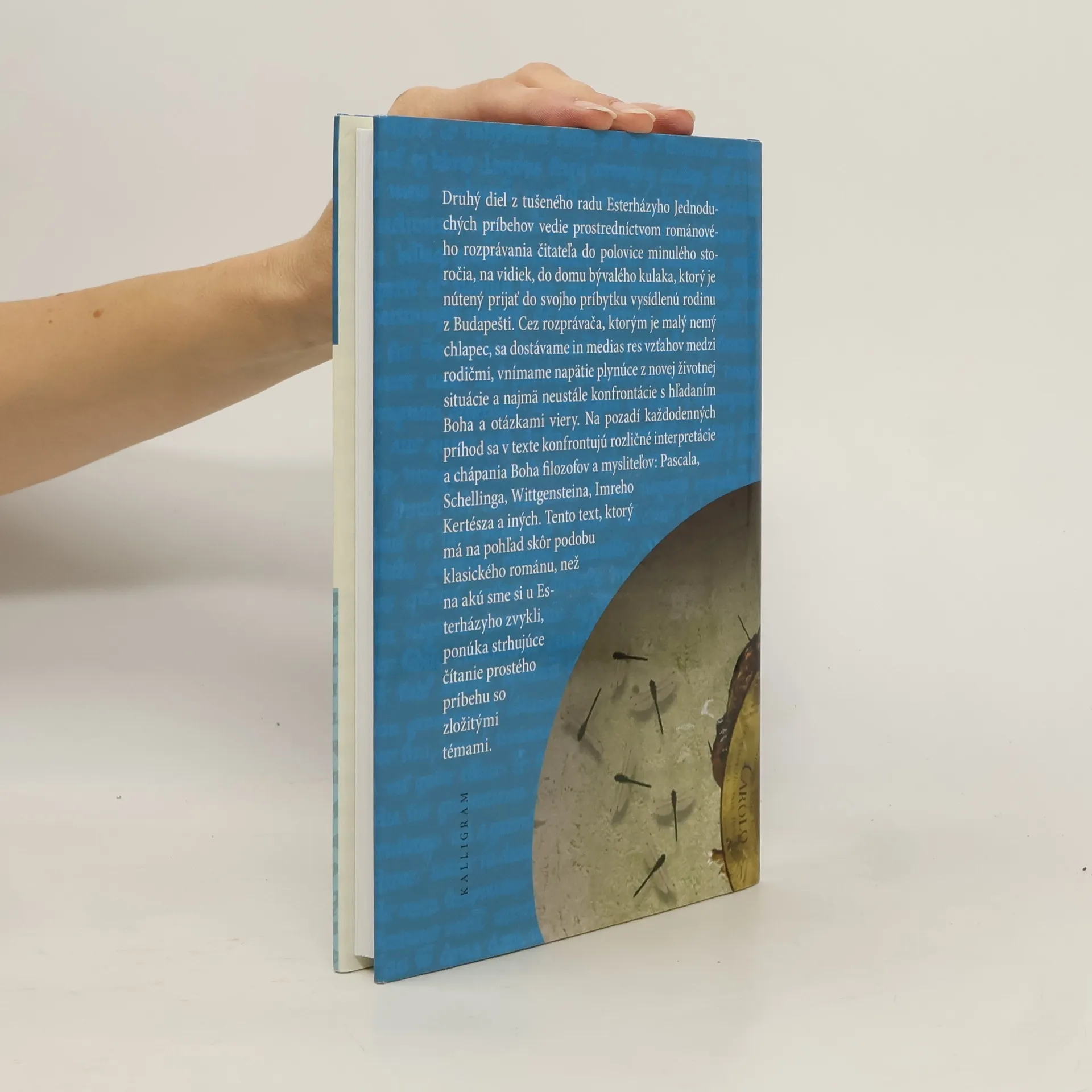 Druhý diel z tušeného radu Esterházyho Jednoduchých príbehov vedie prostredníctvom románového rozprávania čitateľa do polovice minulého storočia, na vidiek, do domu bývalého kulaka, ktorý je nútený prijať do svojho príbytku vysídlenú rodinu z Budapešti. Cez rozprávača, ktorým je malý nemý chlapec, sa dostávame in medias res vzťahov medzi rodičmi, vnímame napätie plynúce z novej životnej situácie a najmä neustále konfrontácie s hľadaním Boha a otázkami viery. Na pozadí každodenných príhôd sa v texte konfrontujú rozličné interpretácie a chápania Boha filozofov a mysliteľov: Pascala, Schellinga, Wittgensteina, Imreho Kertésza a iných. Tento text, ktorý má na pohľad skôr podobu klasického románu, než na akú sme si u Eszterházyho zvykli, ponúka strhujúce čítanie prostého príbehu so zložitými témami.