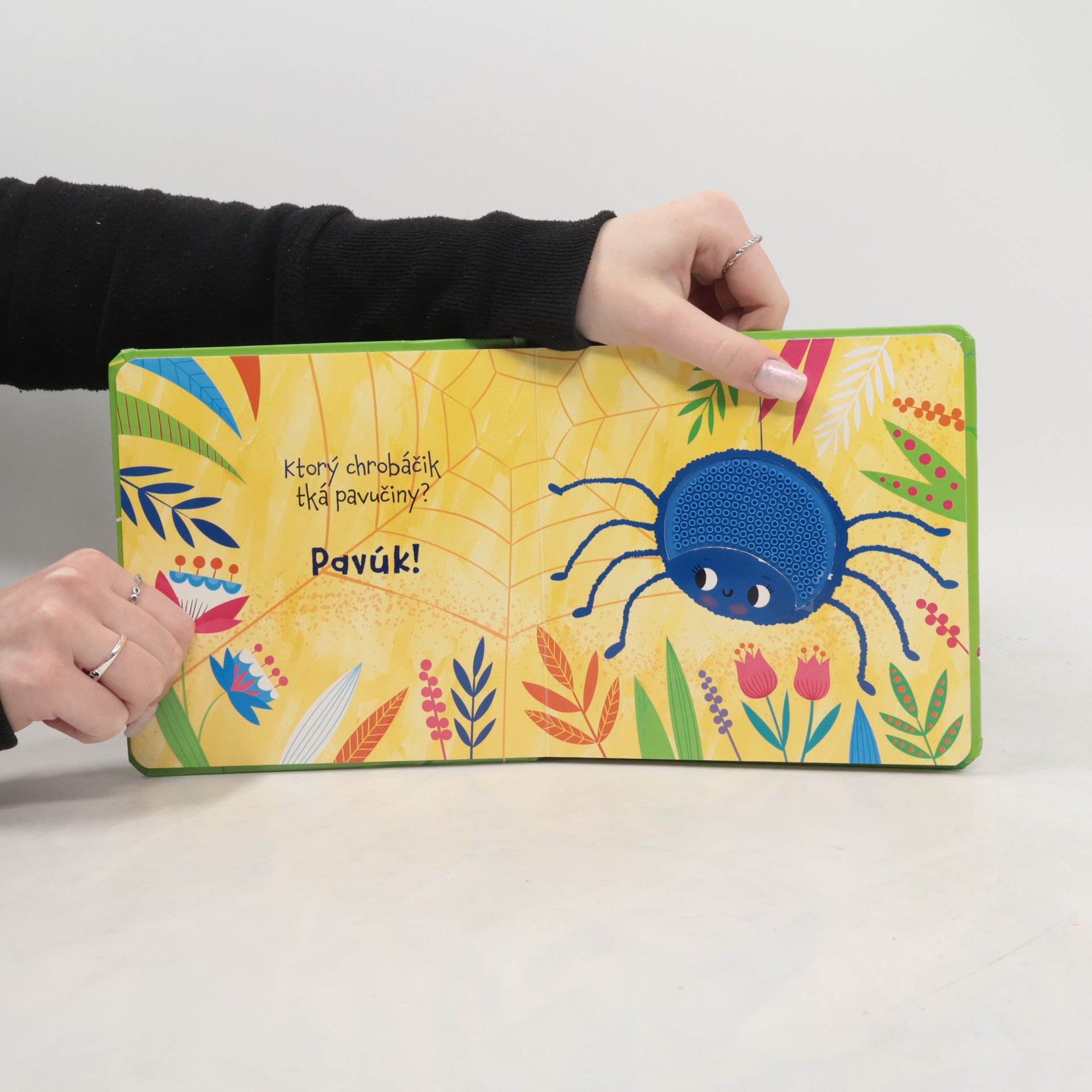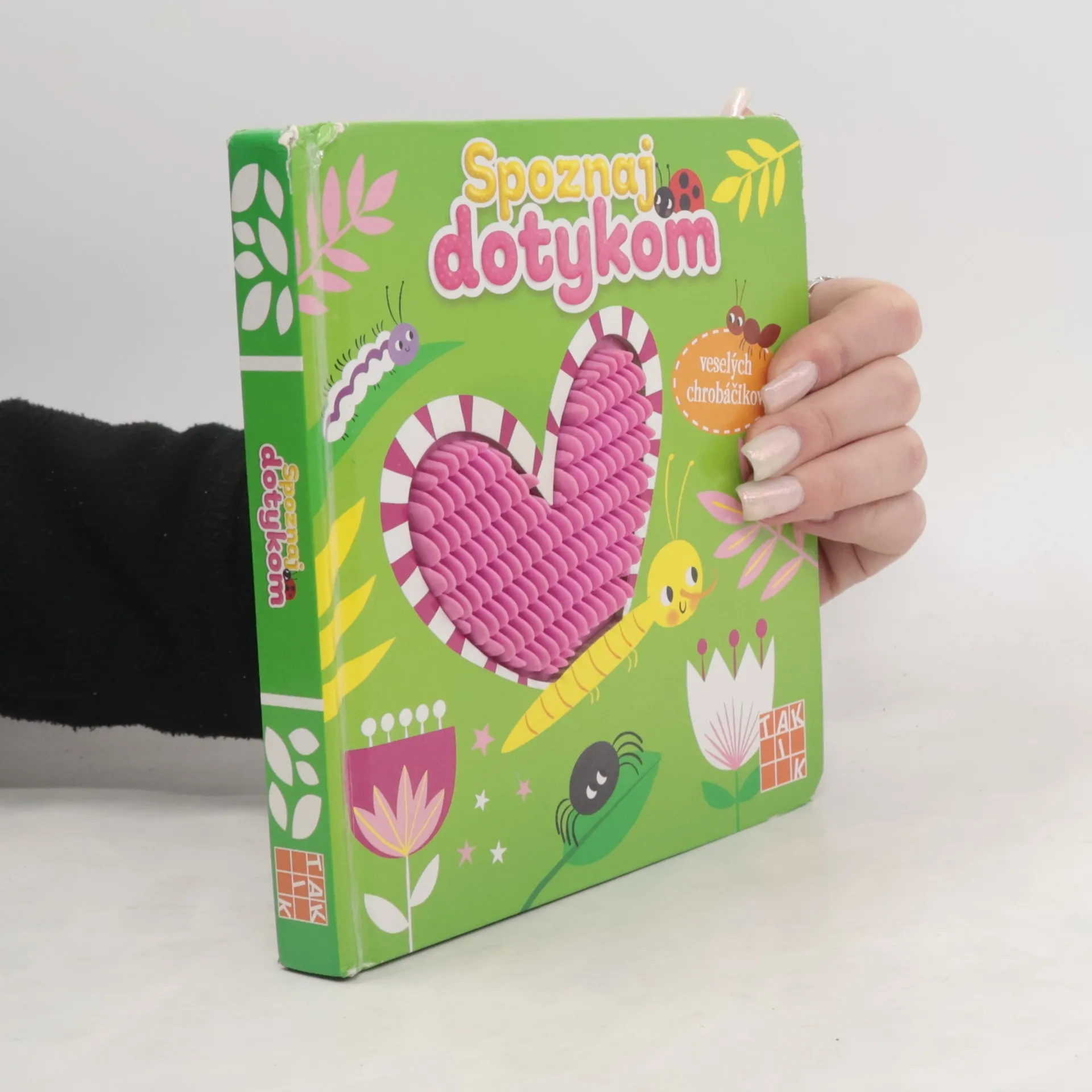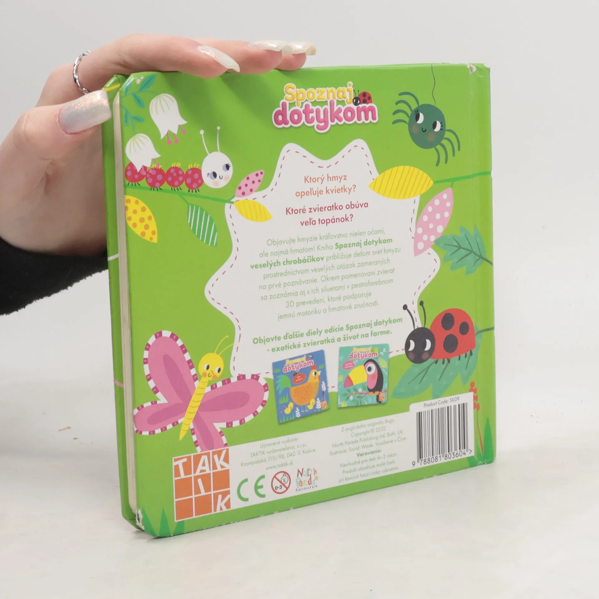 Ktorý hmyz opeľuje kvietky? Ktorý chrobáčik tká pavučiny? Ktoré zvieratko obúva veľa topánok? Objavujte hmyzie kráľovstvo nielen očami, ale aj hmatom. Kniha Spoznaj dotykom veselých chrobáčikov približuje deťom svet hmyzu prostredníctvom veselých otázok zameraných na prvé poznávanie. Okrem pomenovaní zvierat sa zoznámia aj s ich siluetami v pestrofarebnom 3D prevedení, ktoré podporuje jemnú motoriku a hmatové zručnosti. Práve hmat je u detí prostriedkom spoznávania nových vecí. Aj vaše deti zbožňujú zvieratká a chcú pohladiť motýlika, stonožku, slimáčika či veselého pavúčika? Knižku Spoznaj dotykom si určite obľúbia. Výrezy s hmatovými prvkami stimulujú a rozvíjajú ich zmysly. Kniha je vhodná pre deti od 3 rokov.