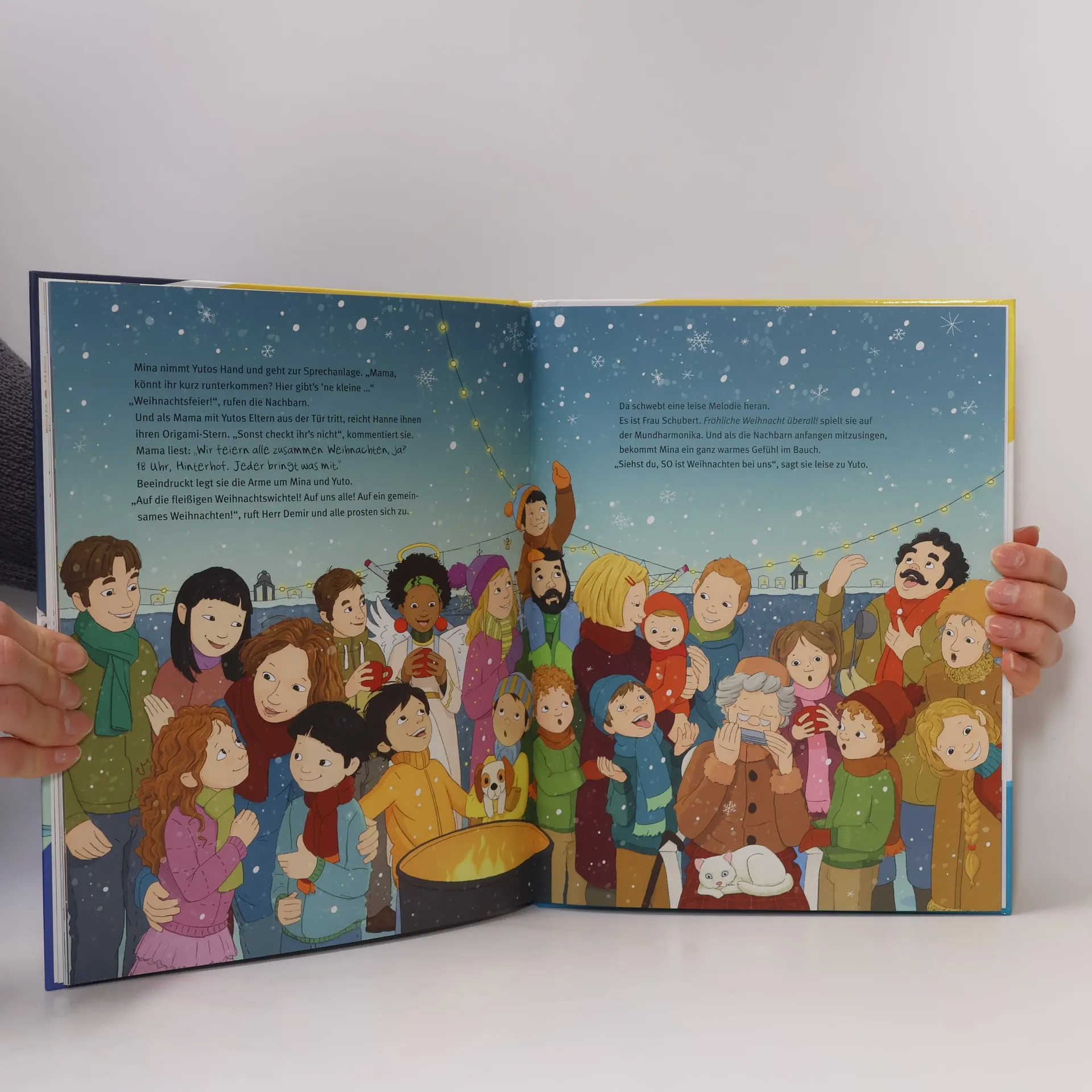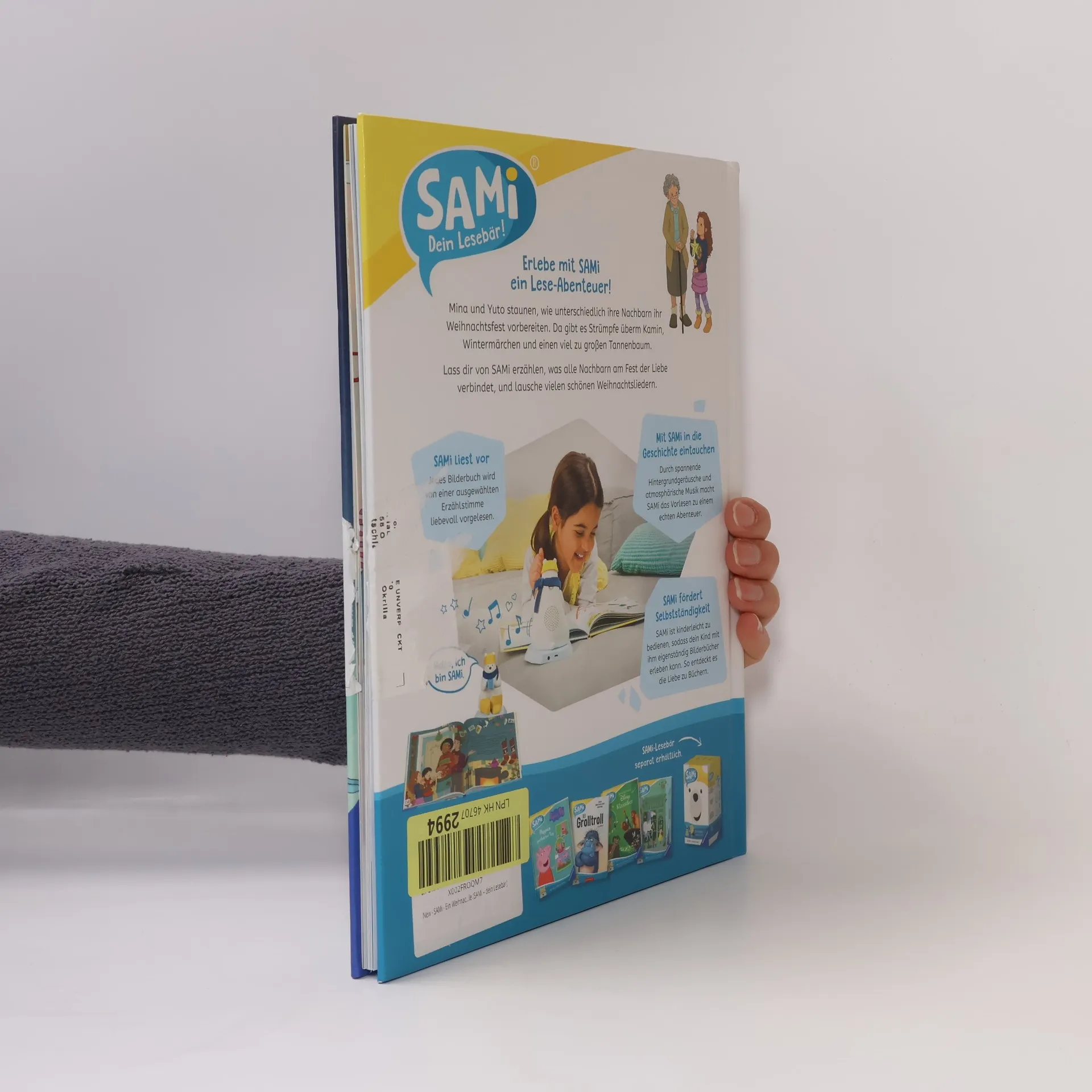 Erlebe mit SAMi ein Lese-Abenteuer! Mina und Yuto sind an Heiligabend ganz aufgeregt. Sie planen eine Weihnachtsüberraschung für alle im Haus! Dafür klingeln sie an sechs Wohnungstüren und staunen, wie unterschiedlich ihre Nachbarn ihr Weihnachtsfest vorbereiten. So begegnen ihnen bunte Strümpfe über Kaminen, Video-Anrufe bei Enkeln im Ausland oder viel zu große Weihnachtsbäume. Ob sie dennoch alle am Fest der Liebe auch etwas verbindet und Minas und Yutos Plan aufgeht? Lesebär SAMi nicht enthalten. Muss separat erworben werden.