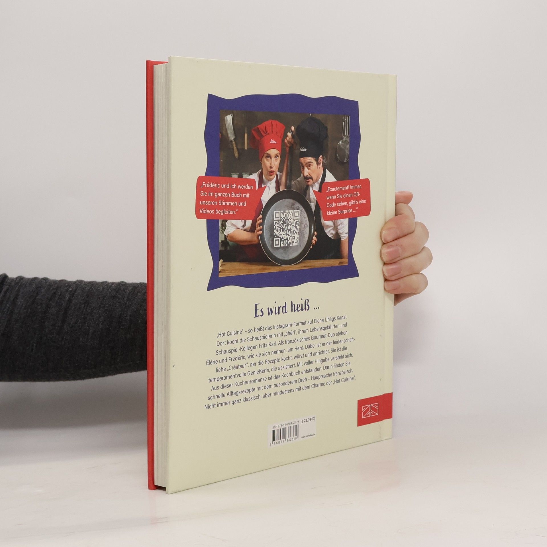 „Hot Cuisine“ – so heißt das neue Format auf Elena Uhligs Instagram-Kanal. Dort serviert die beliebte Schauspielerin als charmant-temperamentvolle "Éléne" mit ihrem chéri "Frédéric" verführerische und erfrischend unkomplizierte französische Fusion-Küche. Frédéric, das ist ihr Lebensgefährte und Schauspielkollege Fritz Karl. Der leidenschaftliche Hobbykoch ist der „créateur“, der kocht, würzt und garniert. Éléne ist die kluge Genießerin, die assistiert und humorvoll-pragmatisch korrigiert. Die Küchenromanze dieses außergewöhnlichen Gourmet-Duos gibt es endlich als Kochbuch. Ein Muss für Fans und alle, die Appetit auf kreative, aber einfach und schnell nachzukochende französisch angehauchte Küche haben. Serviert werden über 50 charmante Rezepte von Vorspeisen und Suppen über Hauptgerichte bis zu verführerischen Desserts und Jause en francais, gewürzt mit viel Liebe und einer kräftigen Prise Humor. Da trifft das „Baguette Éléne“ auf die einfachste Fischsuppe der Welt. Und zwischendurch gibt’s Variationen von Tartines, hübsch belegten Schnittchen. Das Tüpfelchen auf dem I: Sonderseiten mit Fotostorys, Küchengeflüster rund ums Kochen und die Liebe und QR-Codes zu den Videos und O-Tönen von Éléne und Frédéric übertragen den Charme des Instagram-Formats auch aufs Buch.