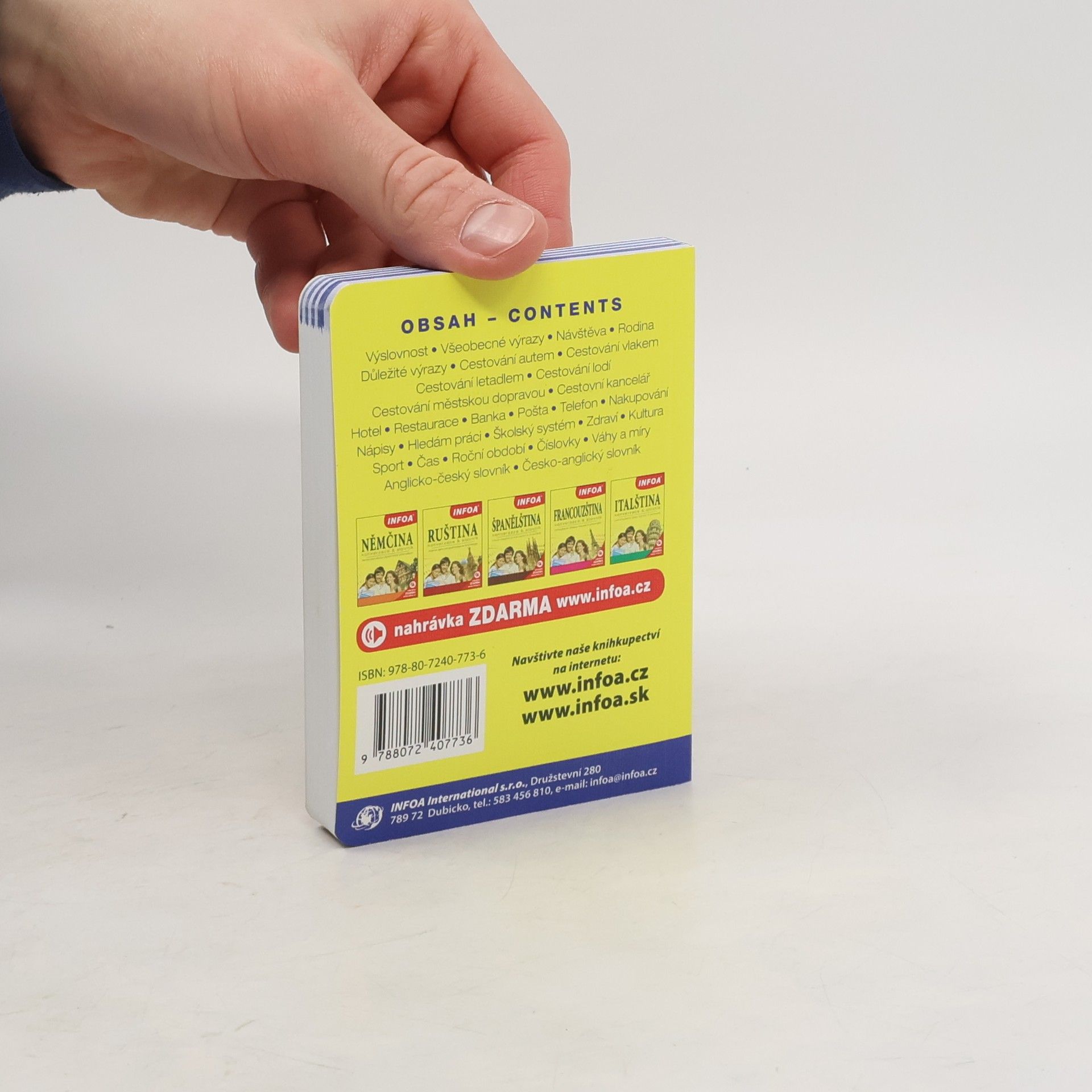 Konverzace a základní slovníček v jednom. Tato přehledná jazyková příručka se stane vaším neocenitelným průvodcem na cestách v zahraničí. Obsahuje základní konverzační témata potřebná v situacích, které nás při cestování mohou potkat – hotel, restaurace, nakupování, doprava, kultura a mnoho dalších. Jednotlivé kapitoly jsou barevně členěny podle tématu, kterému se věnují, a jsou tak mnohem přehlednější pro běžné využití v daném okamžiku. Druhou část jazykového průvodce na cesty tvoří oboustranný slovníček. Novinkou je možnost získat na stránkách nakladatele zvukovou verzi konverzace v anglickém jazyce, kterou publikace obsahuje.