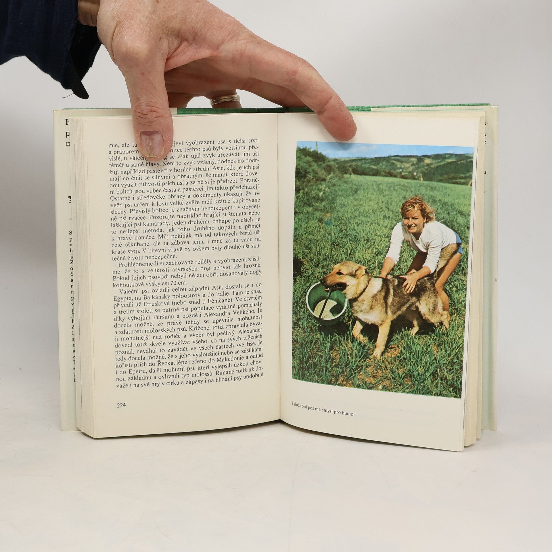 Autorka informuje obsáhle o původu psa a jeho poslání v různých dobách. Přestože je kniha nabita konkrétními poznatky, je vidět, že vztah autorky ke psům je opravdu vřelý. Obsah knihy je, především pokud se týká hodnocení vztahů lidí ke psům, nadčasový. Kresby Zdeněk Berger. Fot. Jiří Cibulka, Eduard Studnička, M. Císařovský