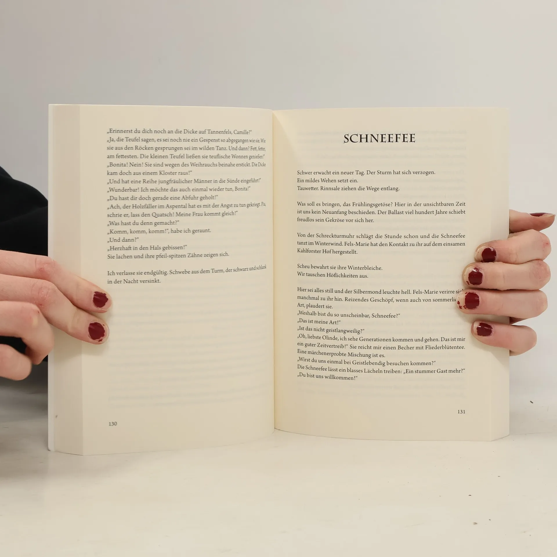 Eine Region in der Bewegung von Zeit zum Überzeitlichen – das, und noch viel mehr findet sich auf der „Nachtseite des hohen Donnersbergs“. Eine fantastische Erzählung, einbettet in die Landschaft des Donnersbergs. Vergangenheit und Gegenwart treffen sich zu einem vergnüglichen Tete-a-Tete zwischen den Welten. Burgdamen schleifen durch ihre sinistre Vergangenheit – und bestaunen die neue Zeit. Ihre Gefährten „im Geiste“ begleiten sie durch die Landschaft, die nicht immer in der Waldeseinsamkeit verharrte. Zeugen der Vergangenheit sind allgegenwärtig, ob die geheimnisvolle Keltensiedlung auf dem Berggipfel, die verwunschenen Burgen am Wegesrand, oder das über Jahrhunderte ausgebeutete Bergbaurevier. Vergnüglich sind die Streifzüge der Olinde von Hohenfels und ihren geistfreien Gesellinnen, wobei es durchaus zu Grenzüberschreitungen kommen kann.