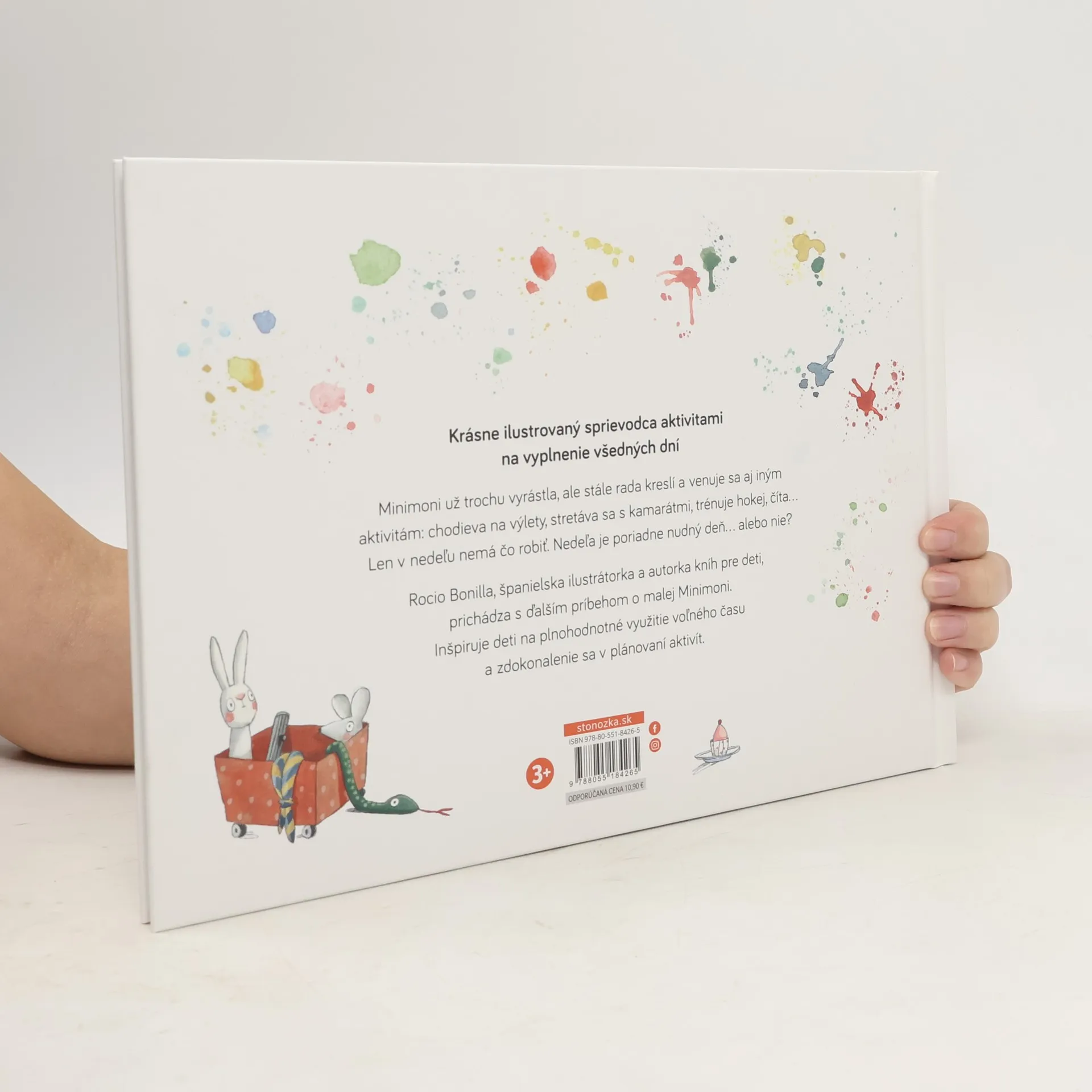 Krásne ilustrovaný sprievodca aktivitami na vyplnenie všedných dní Minimoni už trochu vyrástla, no stále rada kreslí a venuje sa aj iným aktivitám: chodieva na výlety, stretáva sa s kamarátmi, trénuje hokej, číta... Len v nedeľu nemá čo robiť. Nedeľa je poriadne nudný deň... alebo nie je? Rocio Bonilla, španielska ilustrátorka a autorka detských knižiek, prichádza s ďalším príbehom o malej Minimoni. Inšpiruje deti na plnohodnotné využitie voľného času a zdokonalenie sa v plánovaní aktivít – aby bola aj nuda zábavná! V knižke nájdete rozkladací týždenný rozvrh, vďaka ktorému sa deti naučia plánovať svoje aktivty. Pre deti od 3 rokov Zo španielčiny preložila Želmíra Čížová.