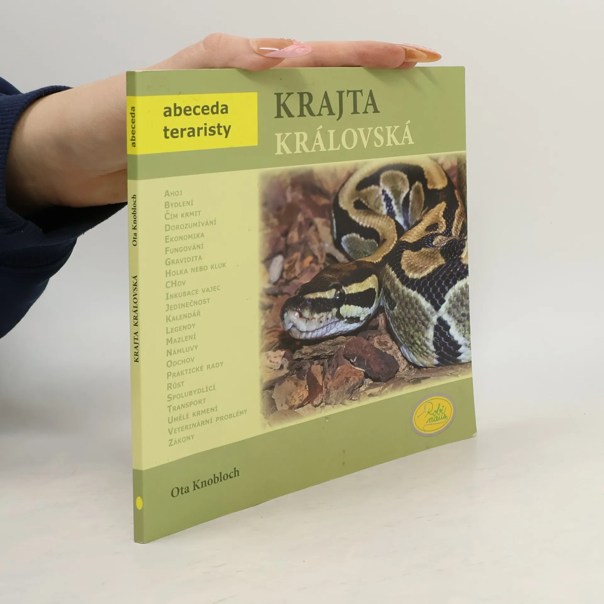Krajta královská Python regius je překrásný a velmi mírný had, který nedorůstá nijak závratných rozměrů, takže je vhodná i pro začínajícího chovatele. Ovšem každý, kdo si chce pořídit (jakékoliv) zvíře, musí znát základní informace, jak o přirozených podmínkách, ze kterých pochází, tak i základní informace o jeho chovu. Zde toto všecho na 72 stránkách najdete. Kniha je přehledně rozdělena do kapitol, je zde věnována pozornost základní péči, rozmnožování, chovu mláďat, možným komplikacím v chovu, vztahu k člověku, biologii druhu atd... Své si zde najdou začátečníci i zkušení chovatelé. Vše je doplněmo mnoha kvalitními barevnými fotografiemi a obrázky. !UPOZORNĚNÍ! - tisková oprava: Při tisku se nám do textu bohužel vloudil šotek, v tabulce na straně 8 je chybně uvedena hmotnost při vylíhnutí - správná hodnota je 35-65 g! Chybu si prosím v knížce opravte.