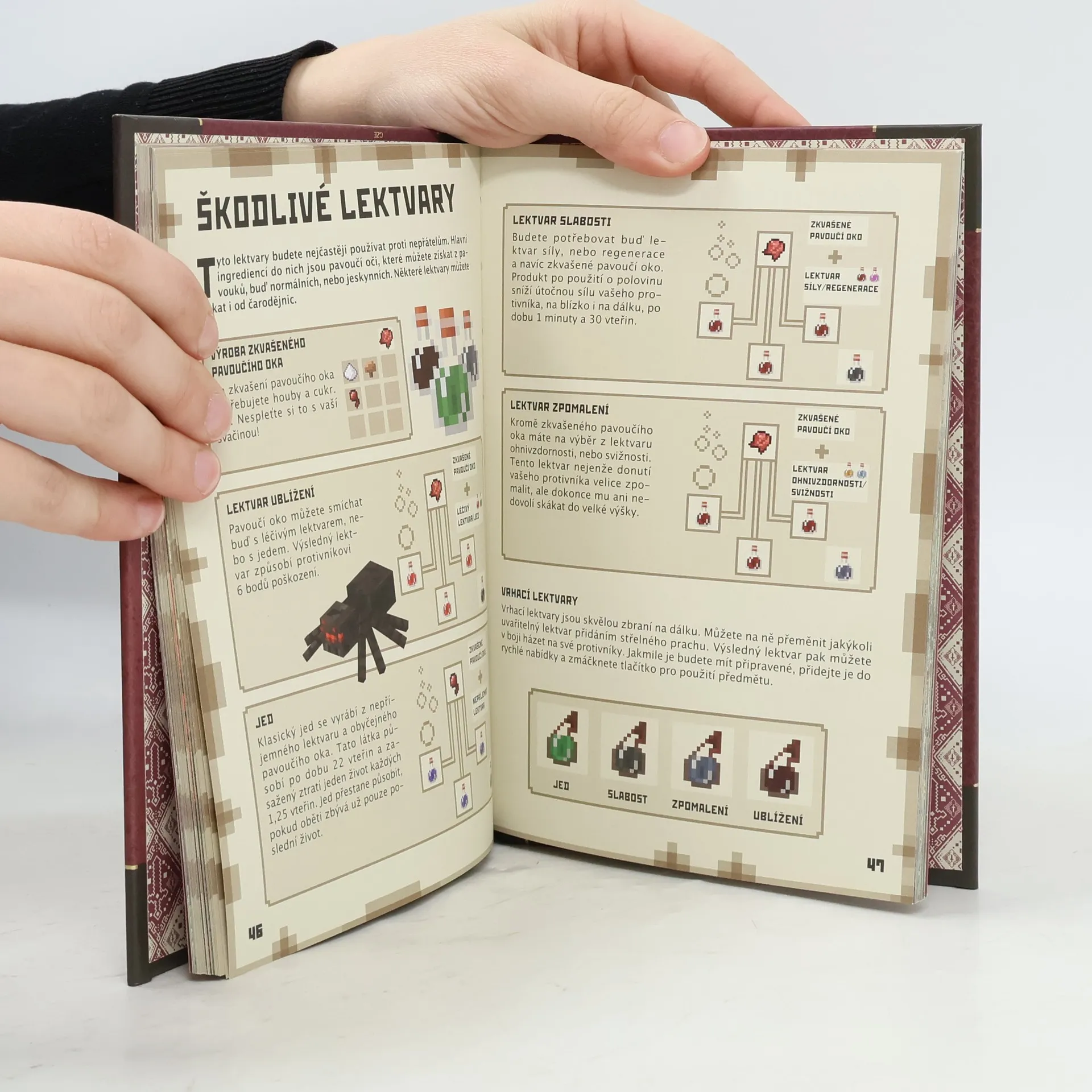 V Minecraftu nejste nikdy sami a hrozba, žena vás někdo zaútočí, je všudypřítomná. Jak můžete přežít? Oficiální Bojová příručka Minecraftu vás naučí všechno, co potřebujete znát, abyste se dokázali ubránit nepřátelským monstrům a hráčům. Naučte se stavět pevnosti, vyrábět obrněná vozidla či zbraně, líčit pasti nebo porážet nepřátele v boji jeden na jednoho. Probojujte se ven z Netheru či Endu. S tipy od mnoha odborníků se brzy stanete v Minecraftu obávanými bojovníky! Benefity: - kniha na téma jedné z nejoblíbenějších her současnosti, která má u nás velkou komunitu fanoušků - skvělé zpracování tématu - srozumitelný jazyk i pro nové fanoušky hry - vhodně zvolený formát