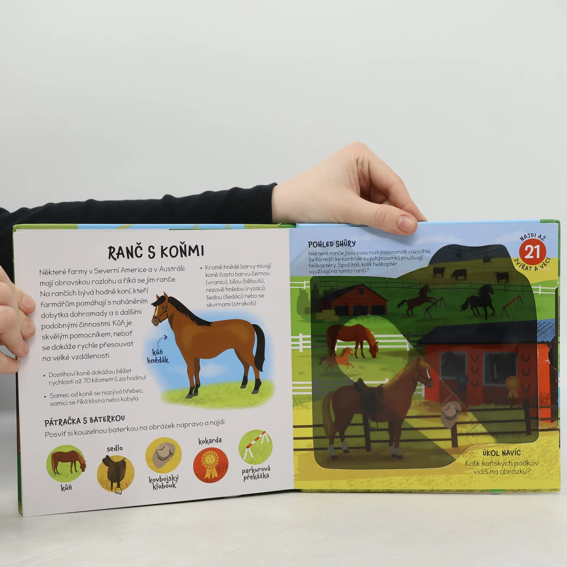 Pohybuj baterkami v potemnělých obrázcích a najdi s jejich pomocí své zvířecí kamarády z farmy! Na každé stránce najdeš o zvířatech z farmy spoustu informací. Kniha s kouzelnou baterkou: Kniha obsahuje 4 kouzelné baterky! Pohybuj baterkami v potemnělých obrázcích a najdi s jejich pomocí své zvířecí kamarády z farmy! Na každé stránce navíc najdeš o zvířatech z farmy spoustu překvapivých informací.