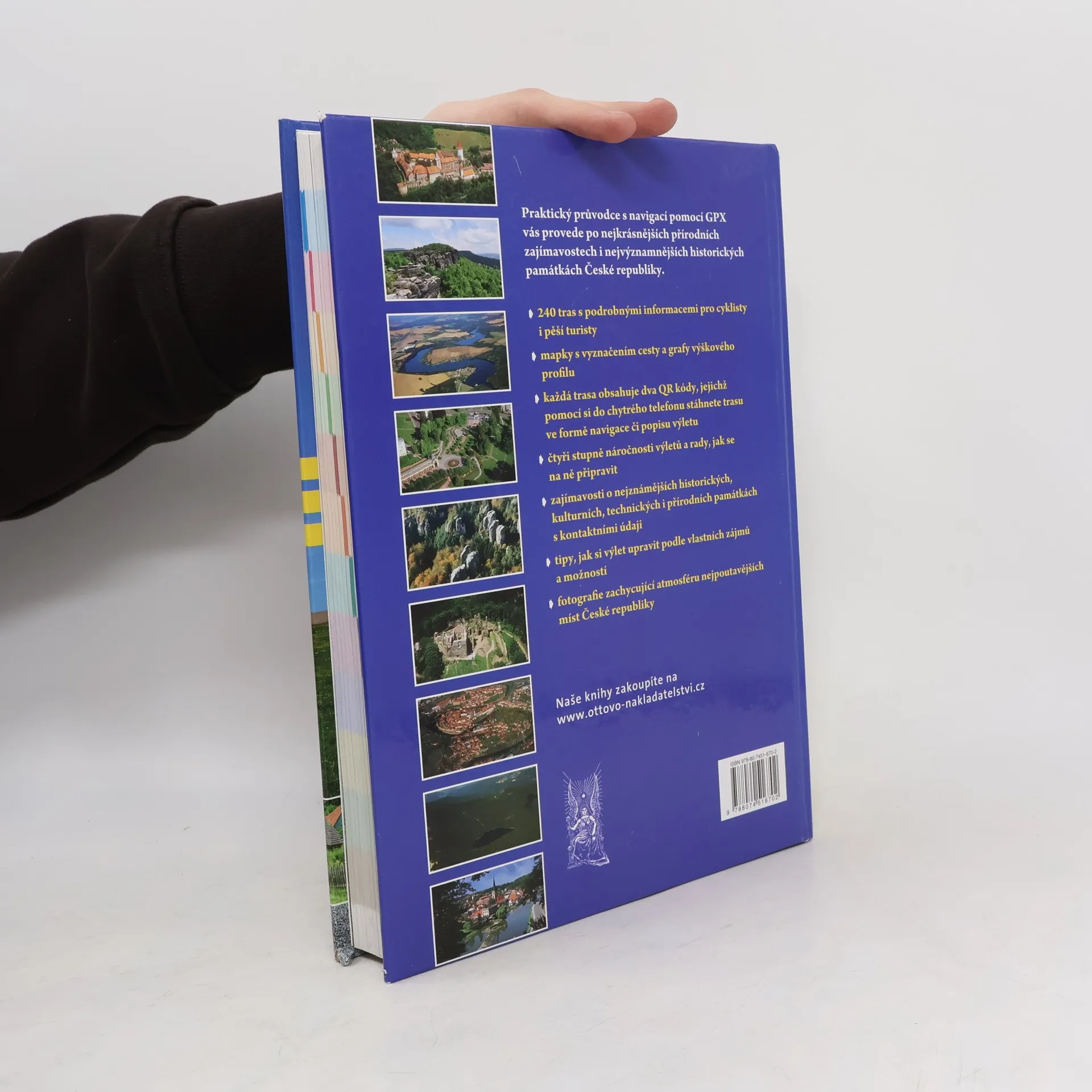 Unikátní vydání turistického atlasu se zaměřuje na nejkrásnější místa Čech, Moravy a Slezska, včetně pohraničí a okolních zemí. Průvodce je rozdělen do 12 oblastí, přičemž každá nabízí více než 20 atraktivních pěších a cyklistických výletů s popisem významných přírodních a historických památek. Trasy začínají a končí v místech s dobrou dostupností hromadné dopravy a občerstvení. Výletní trasy jsou přehledně označeny a rozděleny podle náročnosti do čtyř stupňů, přičemž u každé je graf s celkovým převýšením, což umožňuje turistům vybrat si trasu odpovídající jejich schopnostem. Každá trasa obsahuje stručnou charakteristiku a popis povrchu cesty, u cyklistických tras je doporučen vhodný typ kola. Na konci každé trasy najdete informace o památkách a zajímavostech včetně užitečných kontaktů. Součástí výletů je také tip na úpravu trasy podle vlastních potřeb. Podrobná mapka zobrazuje příslušný úsek s barevně zvýrazněnou trasou, a přiložené fotografie zachycují atmosféru kraje. Kniha obsahuje QR kódy, které umožňují načíst údaje o trasách do navigace nebo chytrého telefonu. Stačí stáhnout gpx soubor a nechat se vést na svých výletech.