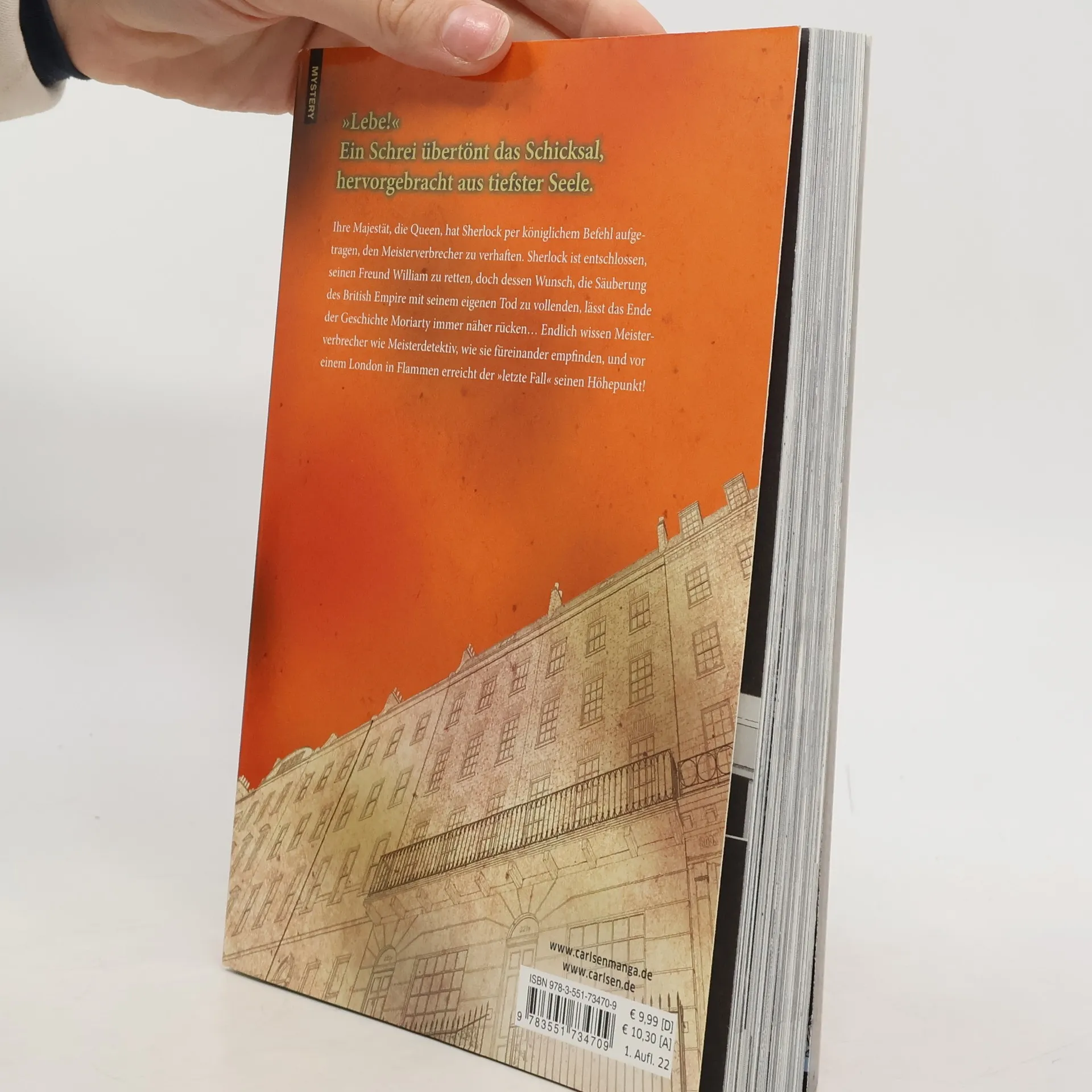 MORIARTY THE PATRIOT erzählt die weltweit bekannte Geschichte rund um den Meisterdetektiv Sherlock Holmes und das kriminelle Genie James Moriarty in einem völlig neuen Licht. Ihre Majestät, die Queen, hat Sherlock per königlichem Befehl aufgetragen, den Meisterverbrecher zu verhaften. Sherlock ist entschlossen, seinen Freund William zu retten, doch dessen Wunsch, die Säuberung des British Empire mit seinem eigenen Tod zu vollenden, lässt das Ende der Geschichte Moriarty immer näher rücken… Endlich wissen Meisterverbrecher wie Meisterdetektiv, wie sie füreinander empfinden, und vor einem London in Flammen erreicht der »letzte Fall« seinen Höhepunkt! Die Entstehungsgeschichte von Sherlock Holmes' Gegenspieler! Weitere Informationen: - Jeder Band mit farbigem Ausklappposter - Tolle Zeichnungen, Spannung garantiert - Jeder Band mit abgeschlossenem Fall - Größeres Format: 14,5 x 21 cm - Anime-Stream bei Wakanim - Abgeschlossen in 19 Bänden (weiter geht es im Spin-Off "Moriarty the Patriot: The Remains")