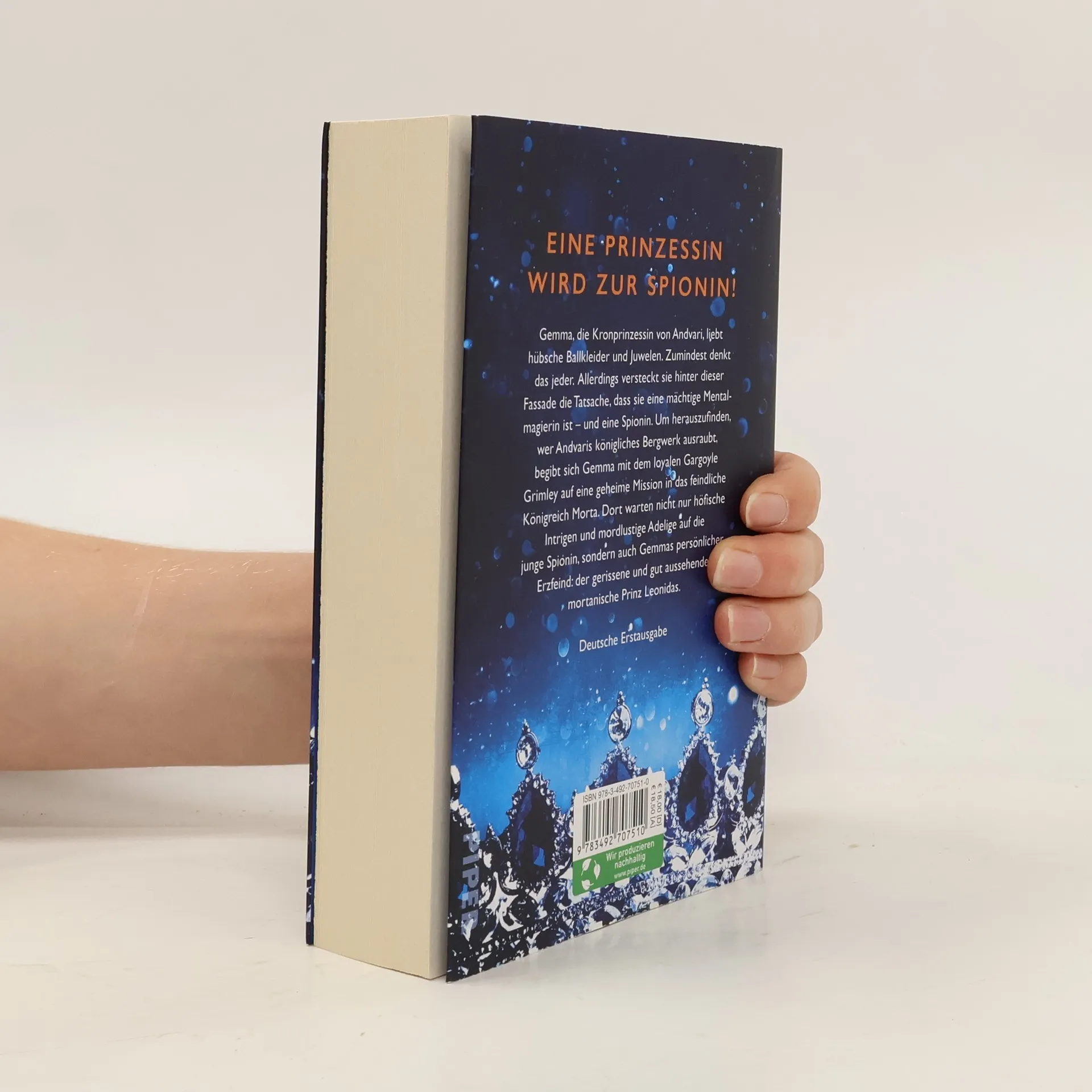 Gemma, die Kronprinzessin von Andvari, liebt hübsche Ballkleider und Juwelen. Zumindest denkt das jeder. Allerdings versteckt sie hinter dieser Fassade die Tatsache, dass sie eine mächtige Mentalmagierin ist – und eine Spionin. Um herauszufinden, wer Andvaris königliches Bergwerk ausraubt, begibt sich Gemma mit dem loyalen Gargoyle Grimley auf eine geheime Mission in das feindliche Königreich Morta. Dort warten nicht nur höfische Intrigen und mordlustige Adelige auf die junge Spionin, sondern auch Gemmas persönlicher Erzfeind: der gerissene und gut aussehende mortanische Prinz Leonidas.