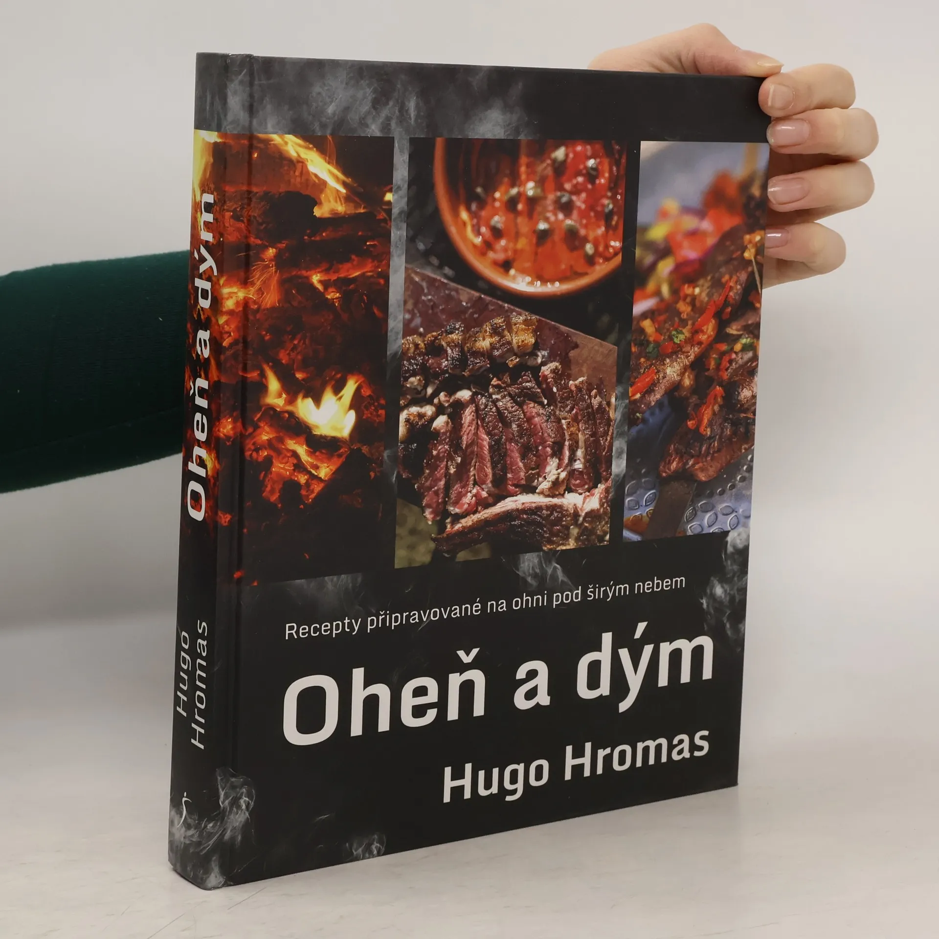 Originální kuchař Michal Hugo Hromas připravuje všechna jídla na ohni, ať už na roštu, v kotlíku či tažínu nebo jinými technikami. Ve své první autorské kuchařce Oheň a dým seznámí čtenáře s taji kolem zakládání ohně, s jednotlivými technikami vaření na ohni, s vybavením, které používá, a které láskyplně nazývá „můj plechovej cirkus“. Na ohni připravuje nejen pořádné kusy masa, ale také vynikající zeleninové pokrmy, peče chleba a dokonce i dezerty. Vaření na venkovním ohni je nejnovějším trendem světové gastronomie a Michal Hromas patří mezi přední mistry tohoto stylu. Velká, krásná, graficky originální kuchařka, ze které od první stránky sálá oheň a stoupá kouř, patří i do kategorie „coffee table“ kuchařek, tedy kuchařek, ze kterých budete nejen vařit, ale také si v nich číst a s potěšením si je prohlížet.