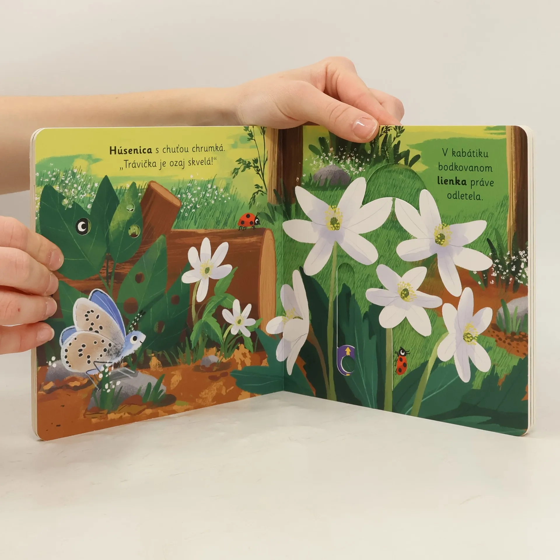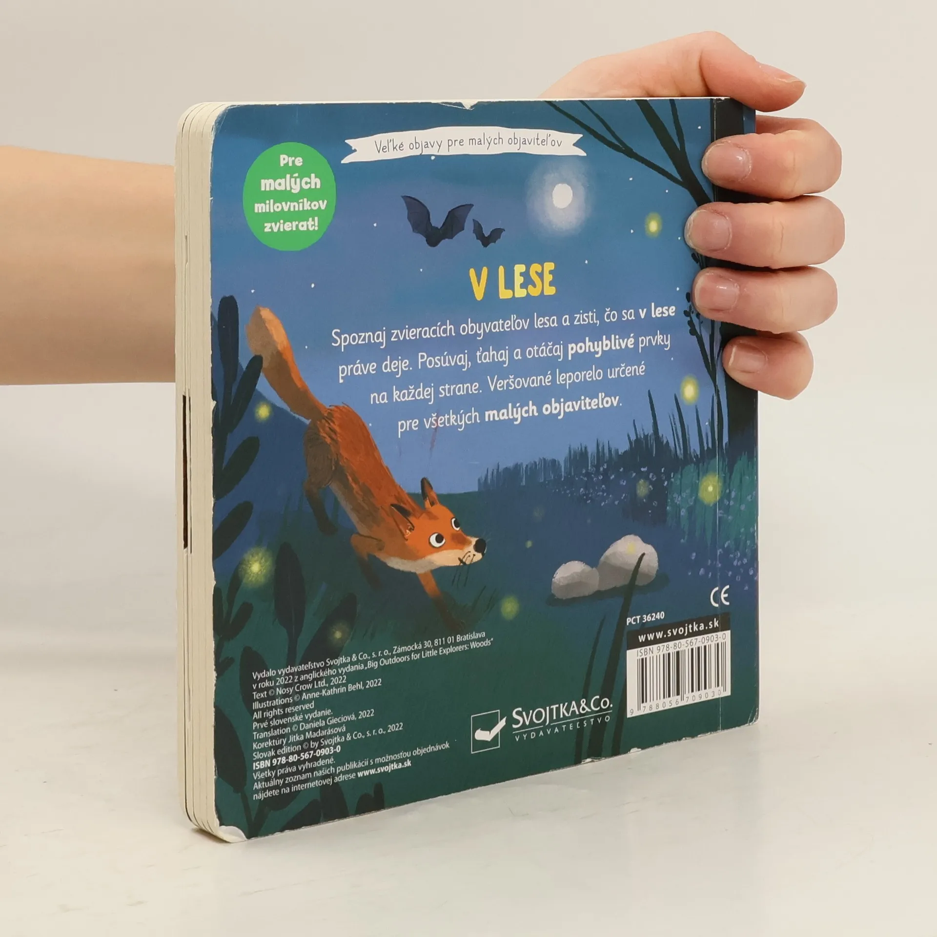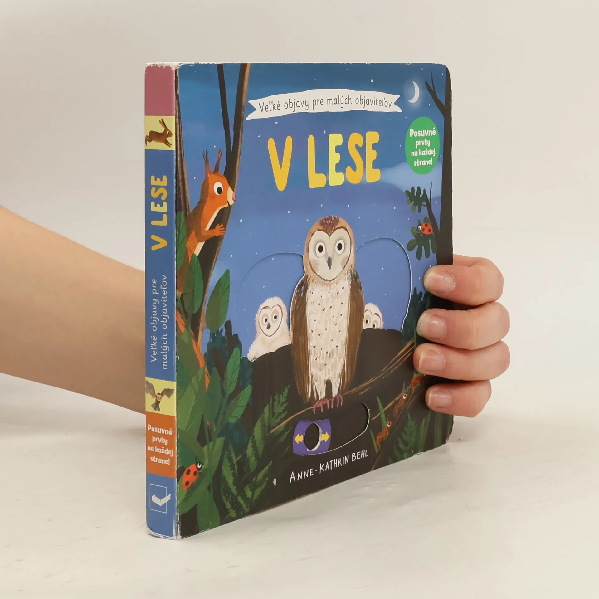 Keď vkročíme do lesa a budeme pekne potichu, určite objavíme veľa zvieracích obyvateľov lesa. Presne tak, ako aj na obrázkoch tohto leporela. Ukrýva sa tam hlučný ďateľ, plachý daniel, ale aj hravé líšky alebo okatá sova. Všetci čakajú na malých objaviteľov a objaviteľky v tomto veršovanom leporele s pohyblivými prvkami. Obrázky môžeš na každej stránke oživiť. Stačí tu potiahnuť, tam posunúť alebo potočiť. Knižka zároveň rozvíja jemnú motoriku.