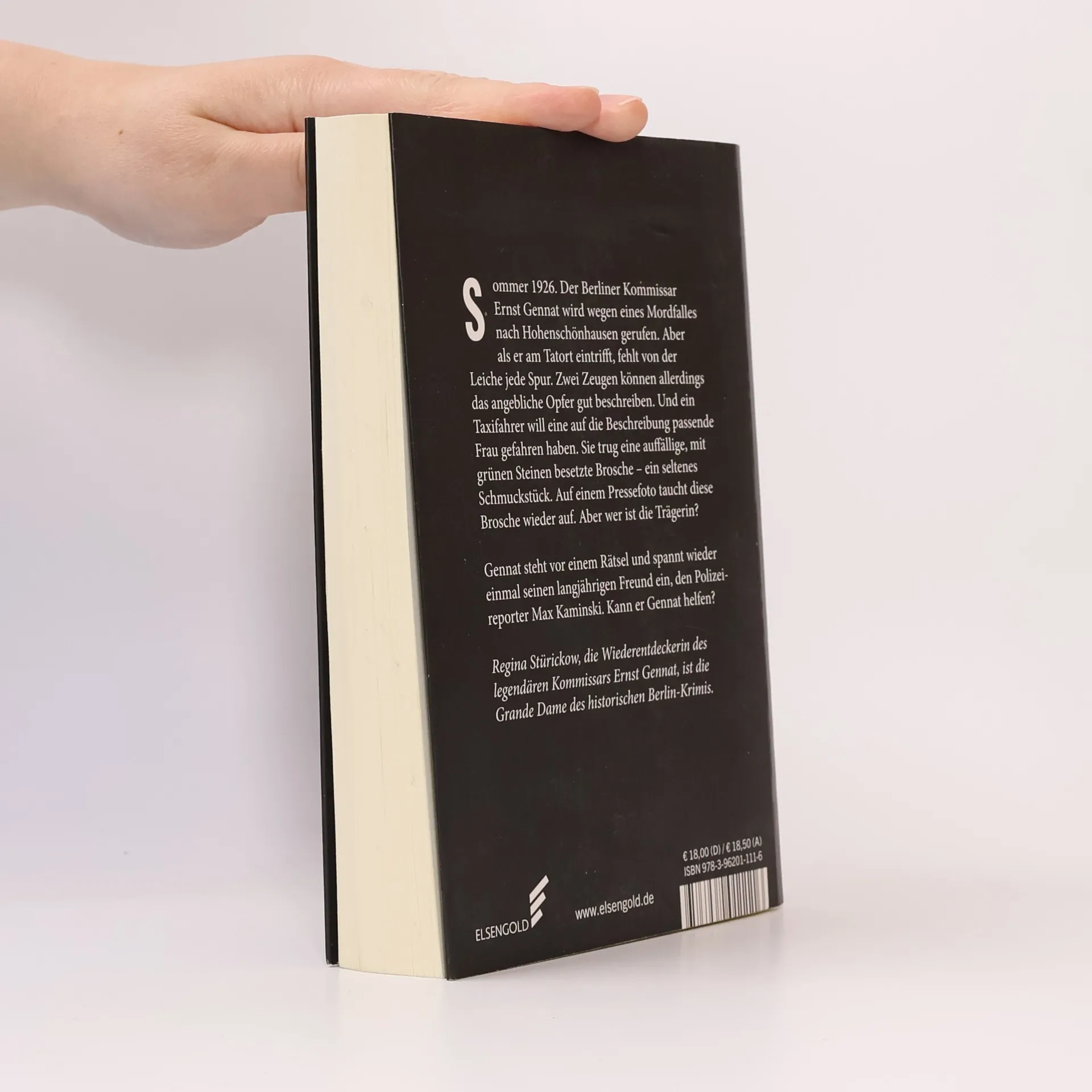 Sommer 1926. Der Berliner Kommissar Ernst Gennat wird wegen eines Mordfalles nach Hohenschönhausen gerufen. Aber als er am Tatort eintrifft, fehlt von der Leiche jede Spur. Zwei Zeugen können allerdings das angebliche Opfer gut beschreiben. Und ein Taxifahrer will eine auf die Beschreibung passende Frau gefahren haben. Sie trug eine auffällige, mit grünen Steinen besetzte Brosche – ein seltenes Schmuckstück. Auf einem Pressefoto taucht diese Brosche wieder auf. Aber wer ist die Trägerin? Gennat steht vor einem Rätsel und spannt mal wieder seinen langjährigen Freund ein, den Polizeireporter Max Kaminski. Kann er Gennat helfen?