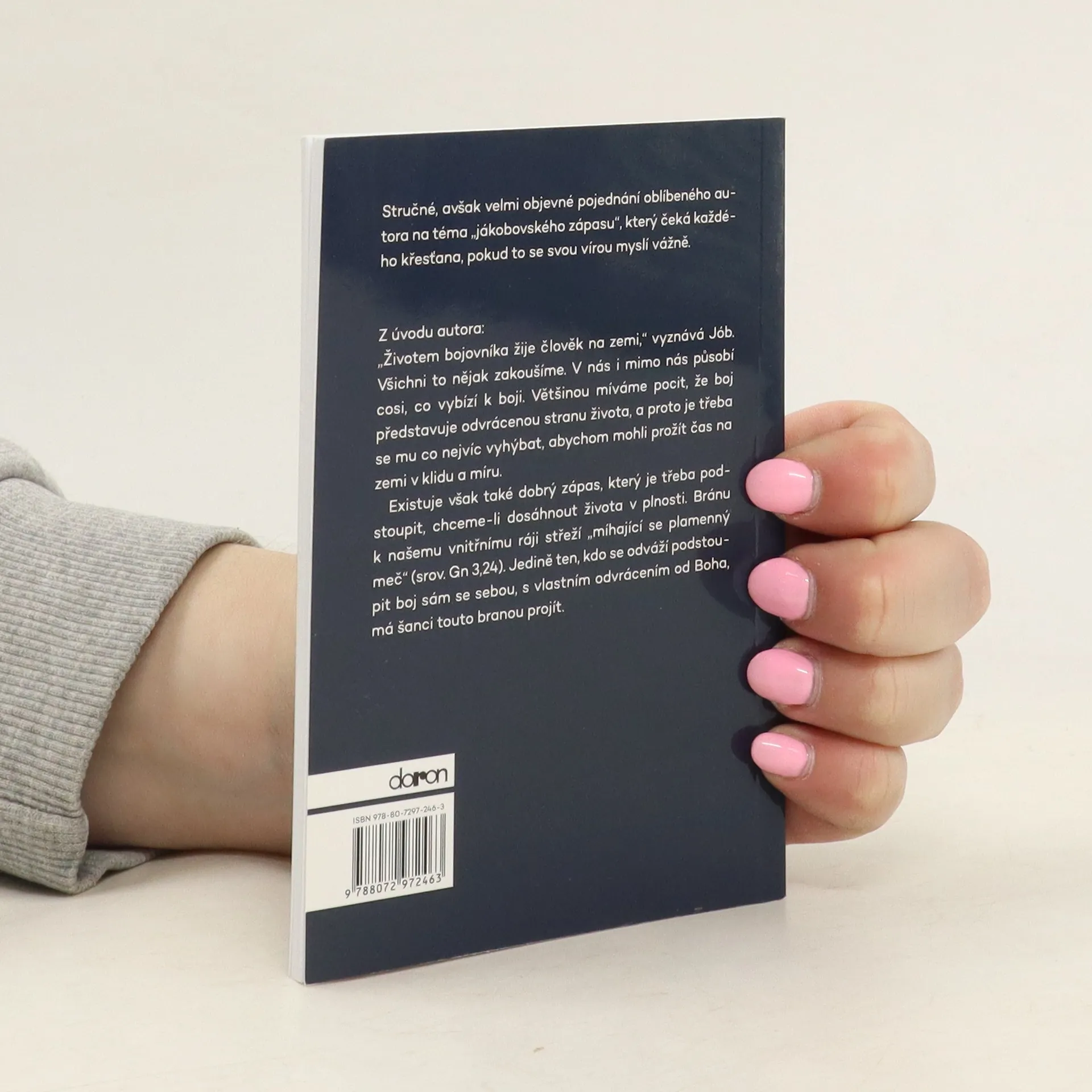Stručné, avšak velmi objevné pojednání oblíbeného autora na téma „jákobovského zápasu“, který čeká každého křesťana, pokud to se svou vírou myslí vážně. „Životem bojovníka žije člověk na zemi,“ vyznává Jób. Všichni to nějak zakoušíme. V nás i mimo nás působí cosi, co vybízí k boji. Většinou míváme pocit, že boj představuje odvrácenou stranu života, a proto je třeba se mu co nejvíc vyhýbat, abychom mohli prožít čas na zemi v klidu a míru. Existuje však také dobrý zápas, který je třeba podstoupit, chceme-li dosáhnout života v plnosti. Bránu k našemu vnitřnímu ráji střeží „míhající se plamenný meč“ (srov. Gn 3,24). Jedině ten, kdo se odváží podstoupit boj sám se sebou, s vlastním odvrácením od Boha, má šanci touto branou projít. (z úvodu autora)