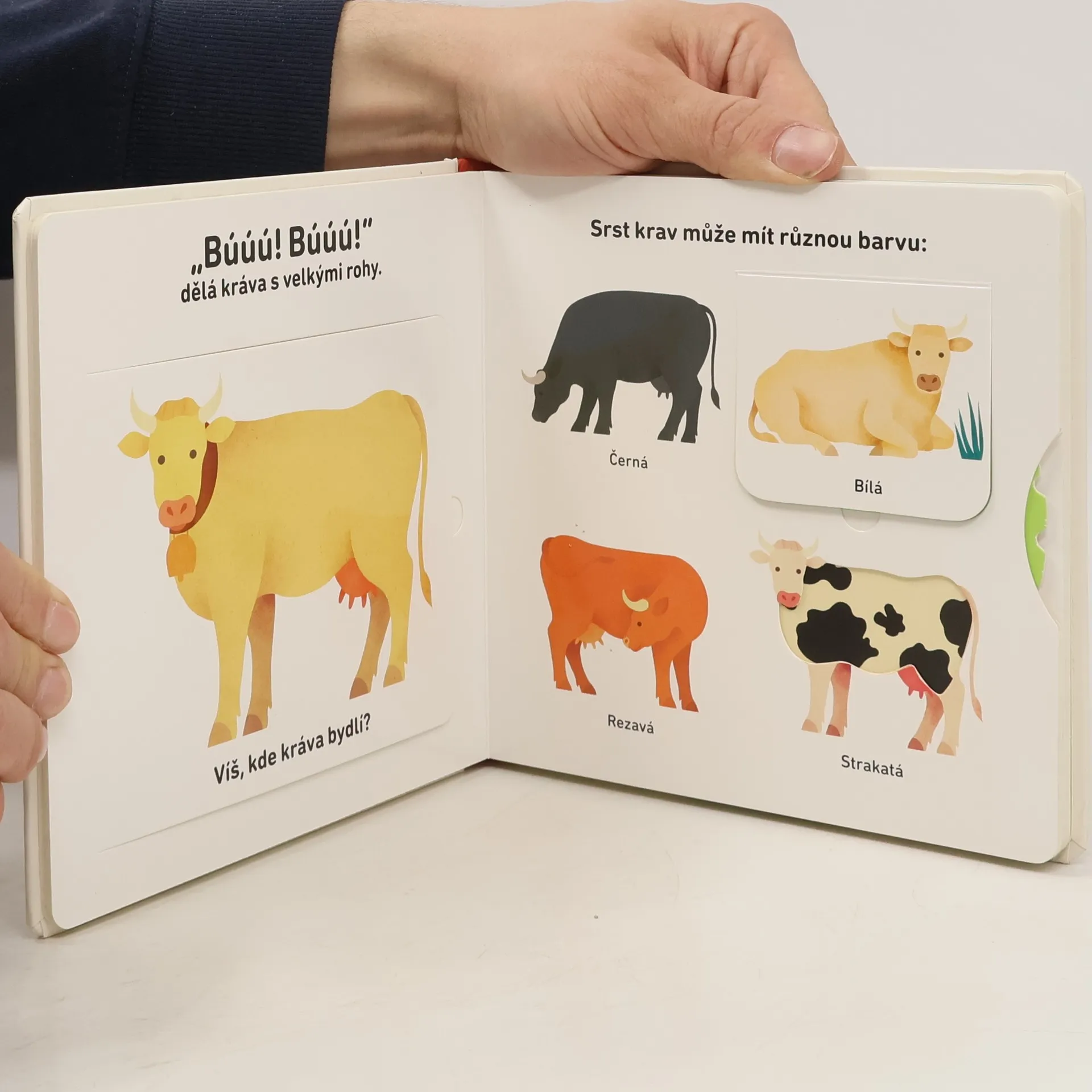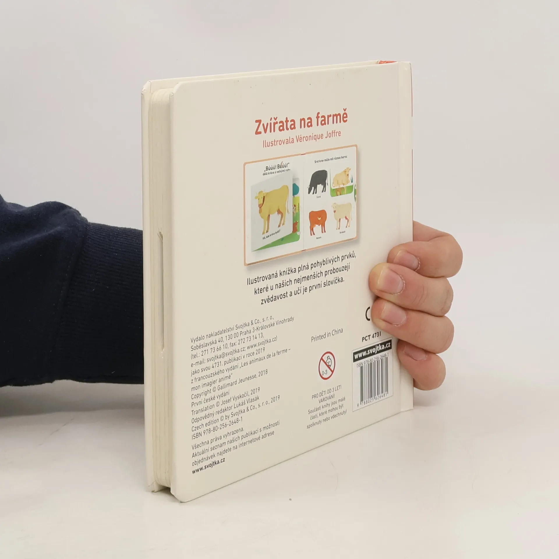 Ilustrovaná knížka o užitečných zvířatech z farmy plná pohyblivých prvků, které u našich nejmenších probouzejí zvědavost a učí je první slovíčka. Názvy zvířat patří mezi první slova dětí a stávají se trvalou součástí slovní zásoby malého človíčka. Proto je důležité věnovat jejich osvojování náležitou pozornost. V této pěkně a vkusně ilustrované knížce se malí čtenáři seznámí s užitečnými zvířaty na farmě, což po domácích mazlíčcích bývají většinou první živočichové, které mají děti možnost spatřit i ve skutečnosti. Díky pohyblivým prvkům si děti uvědomí, že zvířata jsou, stejně jako ony, neustále v pohybu a že potřebují jíst, spát a hýbat se, aby byla zdravá. Popisky k obrázkům děti zaujmou a vtáhnou je do čtení. Děti se seznámí se slepicemi a dalšími domácími ptáky, na pastvinách budou pozorovat krávy a ovce a vyrazí na báječnou projížďu v kočáře nebo na poníkovi. Díky pohyblivým částem kniha rozvíjí také jemnou motoriku.