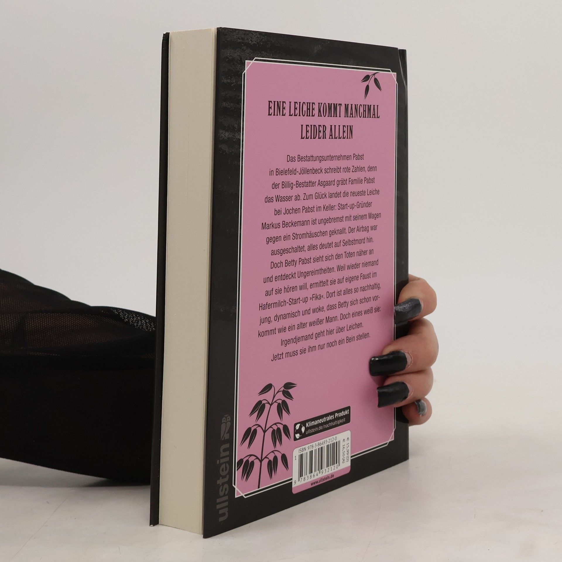 EINE LEICHE KOMMT MANCHMAL LEIDER ALLEINDas Bestattungsunternehmen Pabst in Bielefeld-Jöllenbeck schreibt rote Zahlen, denn der Billig-Bestatter Asgaard gräbt Familie Pabst das Wasser ab. Zum Glück landet die neueste Leiche bei Jochen Pabst im Keller: Start-up-Gründer Markus Beckemann ist ungebremst mit seinem Wagen gegen ein Stromhäuschen geknallt. Der Airbag war ausgeschaltet, alles deutet auf Selbstmord hin. Doch Betty Pabst sieht sich den Toten näher an und entdeckt Ungereimtheiten. Weil wieder niemand auf sie hören will, ermittelt sie auf eigene Faust im Hafermilch-Start-up »Fika«. Dort ist alles so nachhaltig, jung, dynamisch und woke, dass Betty sich schon vorkommt wie ein alter weißer Mann. Doch eines weiß sie: Irgendjemand geht hier über Leichen. Jetzt muss sie ihm nur noch ein Bein stellen.