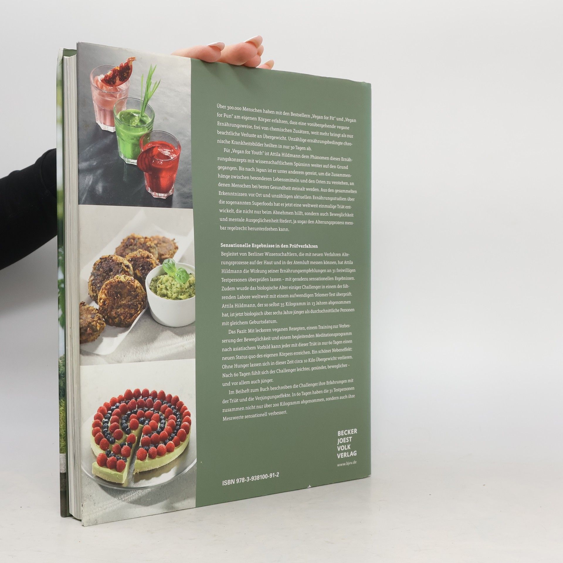 Über 100.000 Menschen haben mit den Bestsellern Vegan for Fit und Vegan for Fun erfahren, dass eine vorübergehende vegane Ernährung ohne chemische Zusätze nicht nur zu Gewichtsverlust führt, sondern auch ernährungsbedingte chronische Krankheiten in nur 30 Tagen heilen kann. In Vegan for Youth hat Attila Hildmann das Phänomen dieser Ernährung mit wissenschaftlichem Ansatz weiter untersucht. Bereits 2015 setzte er die Telomer-Messung ein, eine Methode zur Entschlüsselung des Alterns, die von Nobelpreisträgerin Elizabeth Blackburn entwickelt wurde. Zudem reiste er nach Japan, um die Zusammenhänge zwischen speziellen Lebensmitteln und der Gesundheit von Menschen, die ein hohes Alter erreichen, zu erforschen. Aus seinen Erkenntnissen über Superfoods entwickelte er eine einzigartige Triät, die Alterungsprozesse verlangsamen kann. Gemeinsam mit Wissenschaftlern der Charité in Berlin überprüfte er die Wirkung seiner Ernährungsempfehlungen. Das Ergebnis: Mit schmackhaften veganen Rezepten, einem Beweglichkeitstraining und einem asiatisch inspirierten Meditationsprogramm kann jeder in nur 60 Tagen einen neuen Körperstatus erreichen. Ein positiver Nebeneffekt: In dieser Zeit können bis zu 10 Kilo Übergewicht verloren werden. Nach 60 Tagen fühlen sich die Teilnehmer leichter, gesünder, beweglicher und jünger.