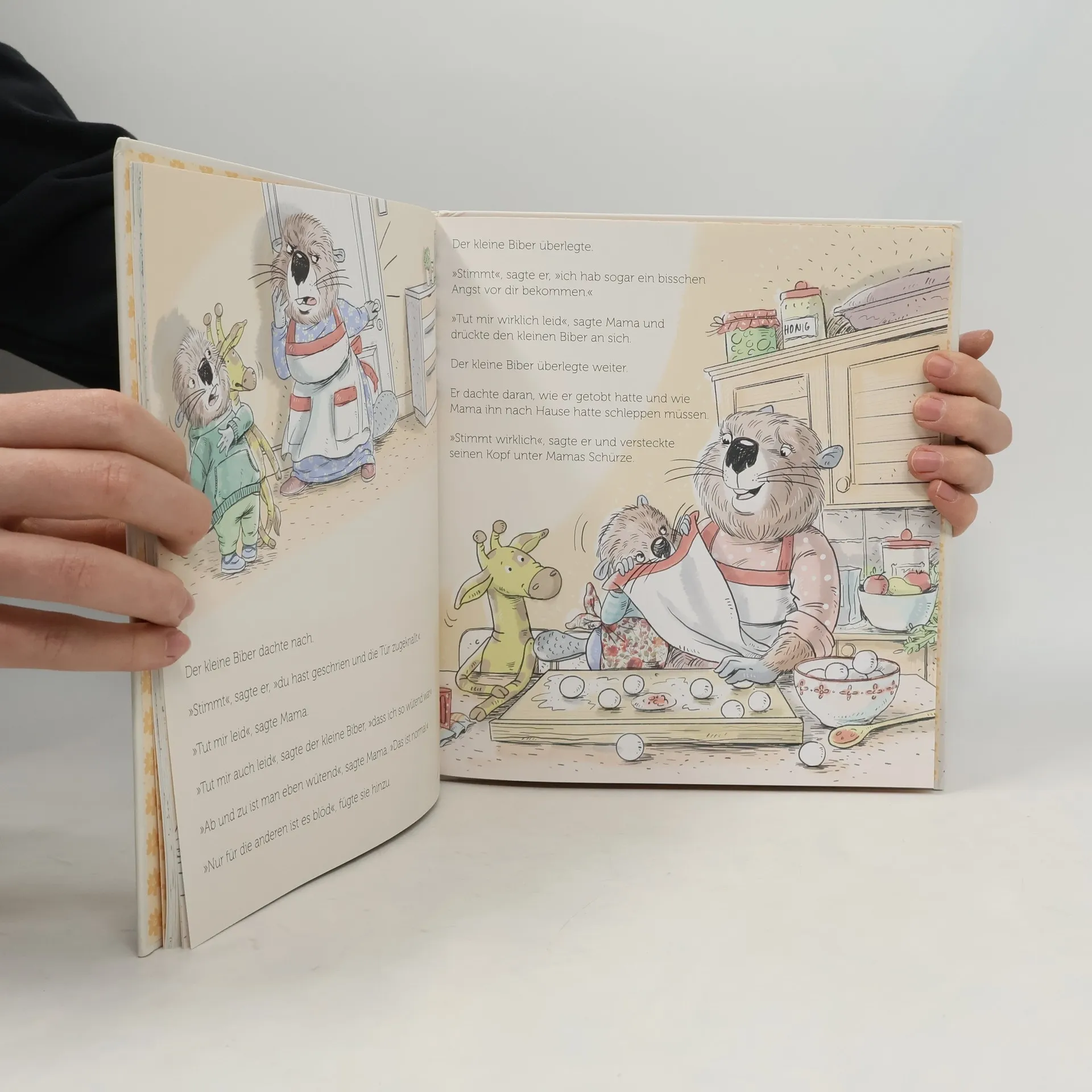 Zu früh aus einem schönen Traum geweckt, die Lieblingshose ist in der Wäsche und der kleine Hase spielt mit dem Hamster, obwohl sie sich fest verabredet hatten – kein Wunder, dass der kleine Biber wütend ist. Als seine Mama dann auch noch die versprochenen Honigklee-Klöße vergisst, reicht es. Die Wut muss raus. Also schreit er seine Mama an, stampft und tobt, bis das ungute Gefühl verraucht ist. Und das ist okay. Denn jeder ist mal wütend. Auch Mama Biber. Man darf wütend sein, das ist nicht schlimm. Hauptsache, am Ende vertragen sich wieder alle. Eine wichtige Botschaft, nicht nur für Kinder zwischen drei und sechs Jahren.