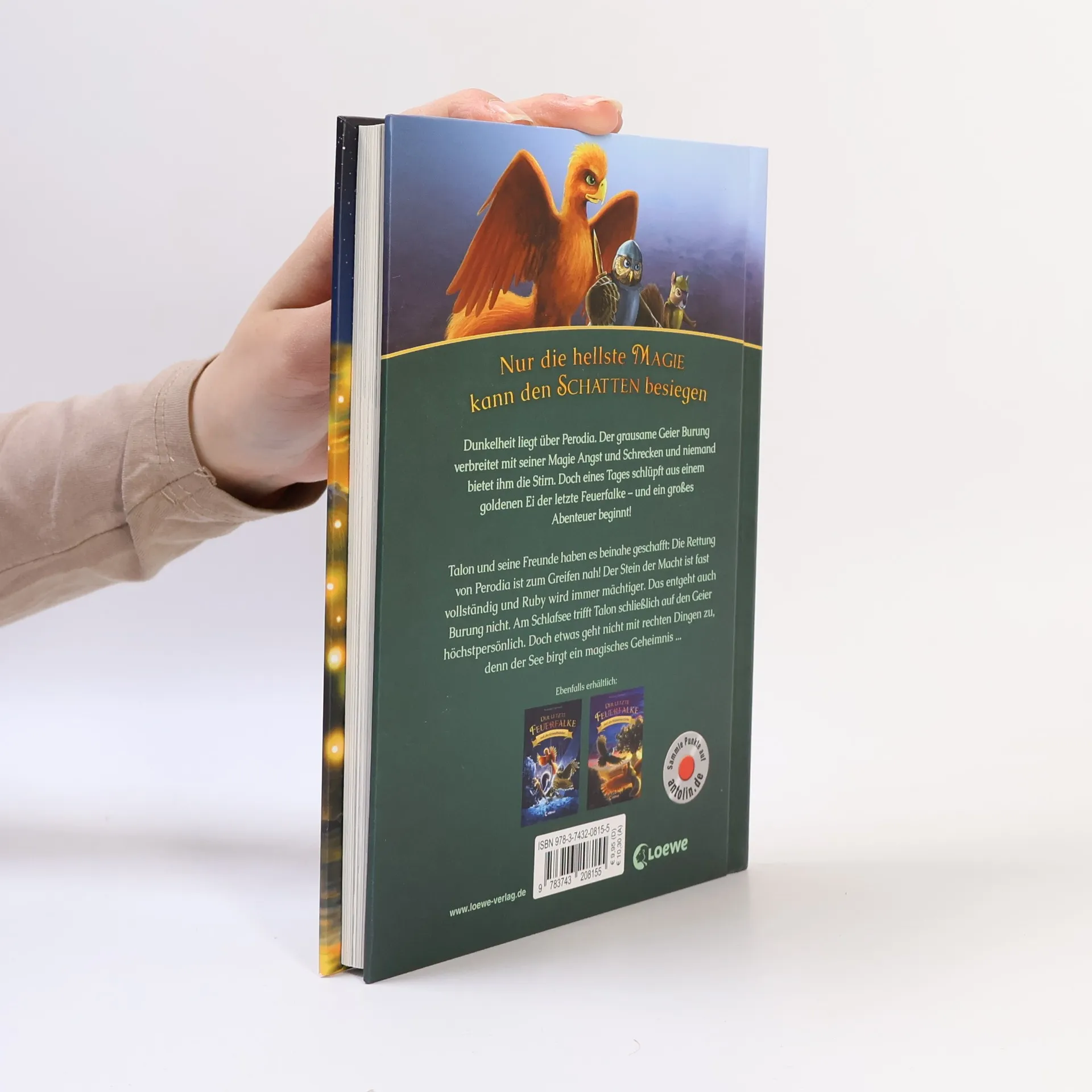 Nur die hellste Magie kann den Schatten besiegen Dunkelheit liegt über Perodia. Der grausame Geier Burung verbreitet mit seiner Magie Angst und Schrecken. Niemand bietet ihm die Stirn. Doch eines Tages schlüpft aus einem goldenen Ei der letzte Feuerfalke – und ein großes Abenteuer beginnt! Talon und seine Freunde haben es beinahe geschafft: Die Rettung von Perodia ist zum Greifen nah! Der Stein der Macht ist fast vollständig und Ruby wird immer mächtiger. Das entgeht auch Burung nicht. Am Schlafsee trifft Talon schließlich auf den Geier höchstpersönlich. Doch etwas scheint nicht mit rechten Dingen zuzugehen, denn der See birgt ein magisches Geheimnis … Actionreiche Tierfantasy Spannendes Abenteuer für Jungs und Mädchen ab 7 Jahren Geeignet zum Vorlesen und ersten Selberlesen Mit tollen Illustrationen auf jeder Seite Episch wie J.R.R. Tolkiens Der Hobbit Kurze Kapitel Beliebte Tiere: Eulen Hochwertiges Hardcover Der Titel ist auf Antolin gelistet.