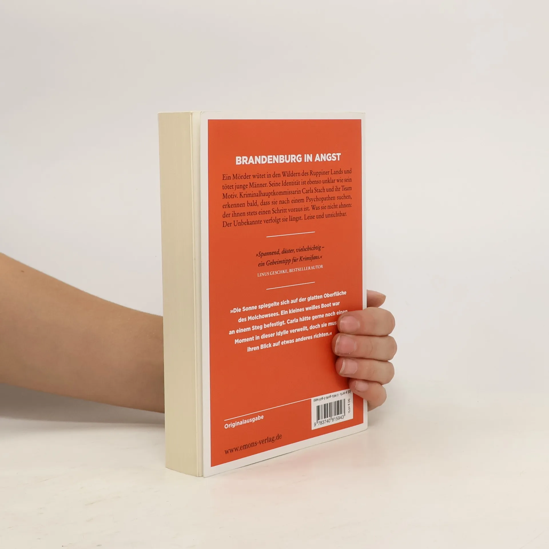 Ein atemloser Thriller, wendungsreich und psychologisch fundiert. Ein Mörder wütet in den Wäldern des Ruppiner Lands und tötet junge Männer. Seine Identität ist ebenso unklar wie sein Motiv. Kriminalhauptkommissarin Carla Stach und ihr Team erkennen bald, dass sie nach einem Psychopathen suchen, der ihnen stets einen Schritt voraus ist. Was sie nicht ahnen: Der Unbekannte verfolgt sie längst. Leise und unsichtbar. . .