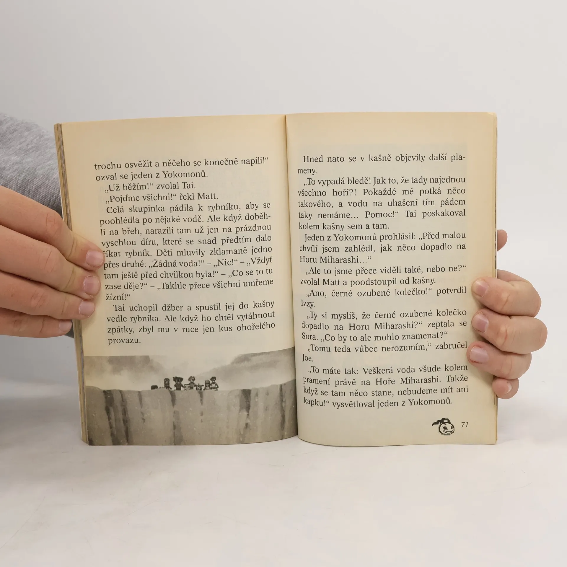 Na ostrově File se děti stanou svědky dramatického souboje mezi dvěma monochromy a brzy na to se setkají s obrovským a zlým Seadramonem. Poprvé také uvidí jedno z nebezpečných černých ozubených koleček,které může proměnit hodné digimony ve zlé. Ostrov File nabízí ale daleko víc: například vesnici malých sladkých Yokomonů. Na lelkování teď ale není čas, protože už brzy dojde k dalšímu nebezpečnému souboji. Meramon zaůtočí na děti i jejich kamarády Digimony. Naštěstí se Biyomon digitálně promění v Birdramon.