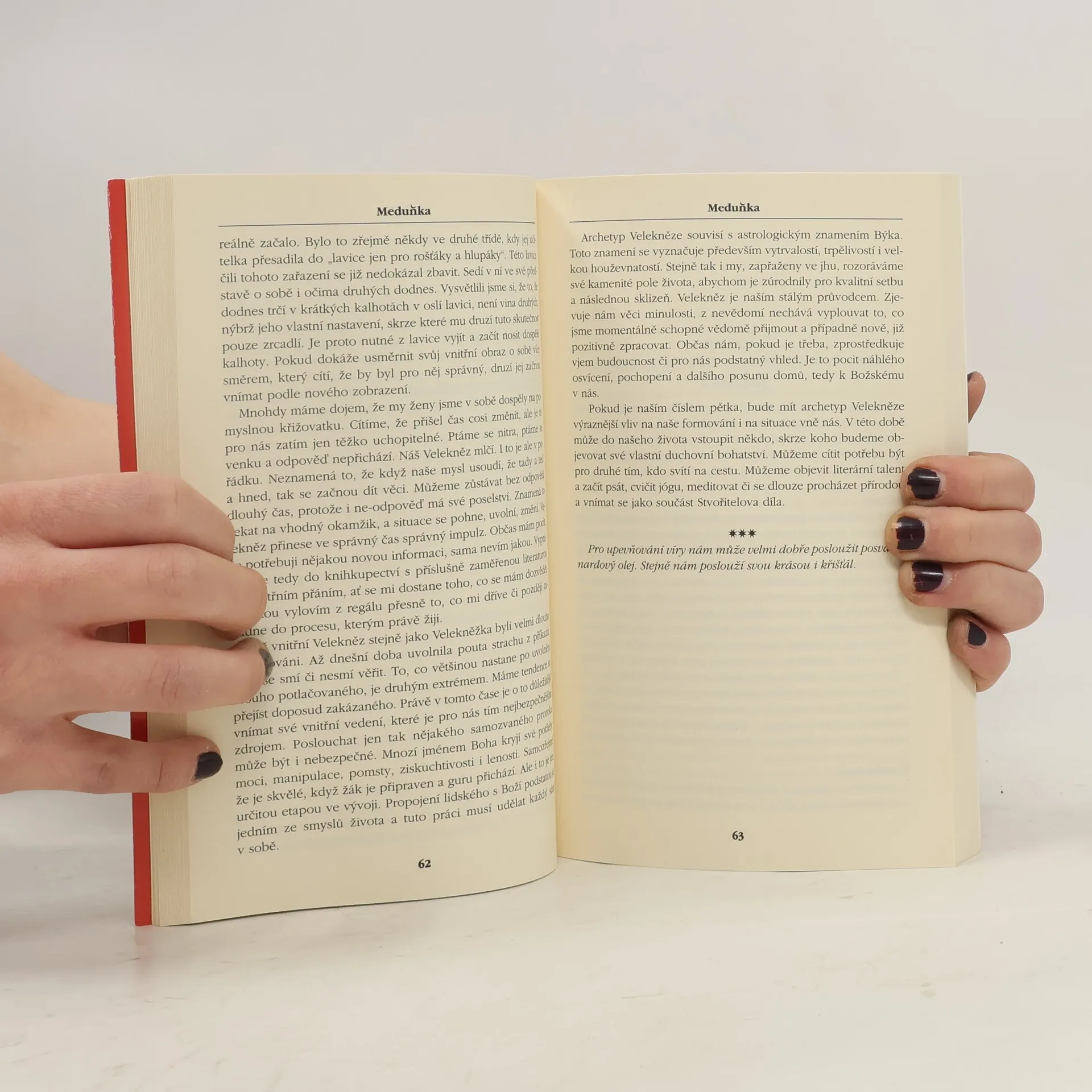 Kniha přináší pohled na nelehký, přesto zázračný úděl ženského bytí. Cesta ženy je archetypální poutí za objevením všech aspektů ženské bytosti. Teprve jejich pochopením, přijetím a ucelením může žena získat plnohodnotný pocit z vlastního bytí. Kniha může být lékem na ženskou bolest, která pramení v dávné minulosti a je předávána z generace na generaci. Nyní nastává čas uvědomění si, vyléčení a odpuštění. Cesta ženy nás vede k osvobození z dogmat patriarchální společnosti a návratu ženy na trůn po bok muže.