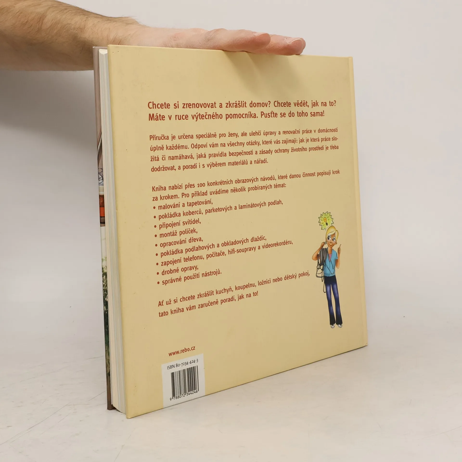 Příručka je určena ženám, přináší podrobné návody jak postupovat při zařizování bytu a drobných opravách (malování, pokládka podlahy, montáž poliček...).