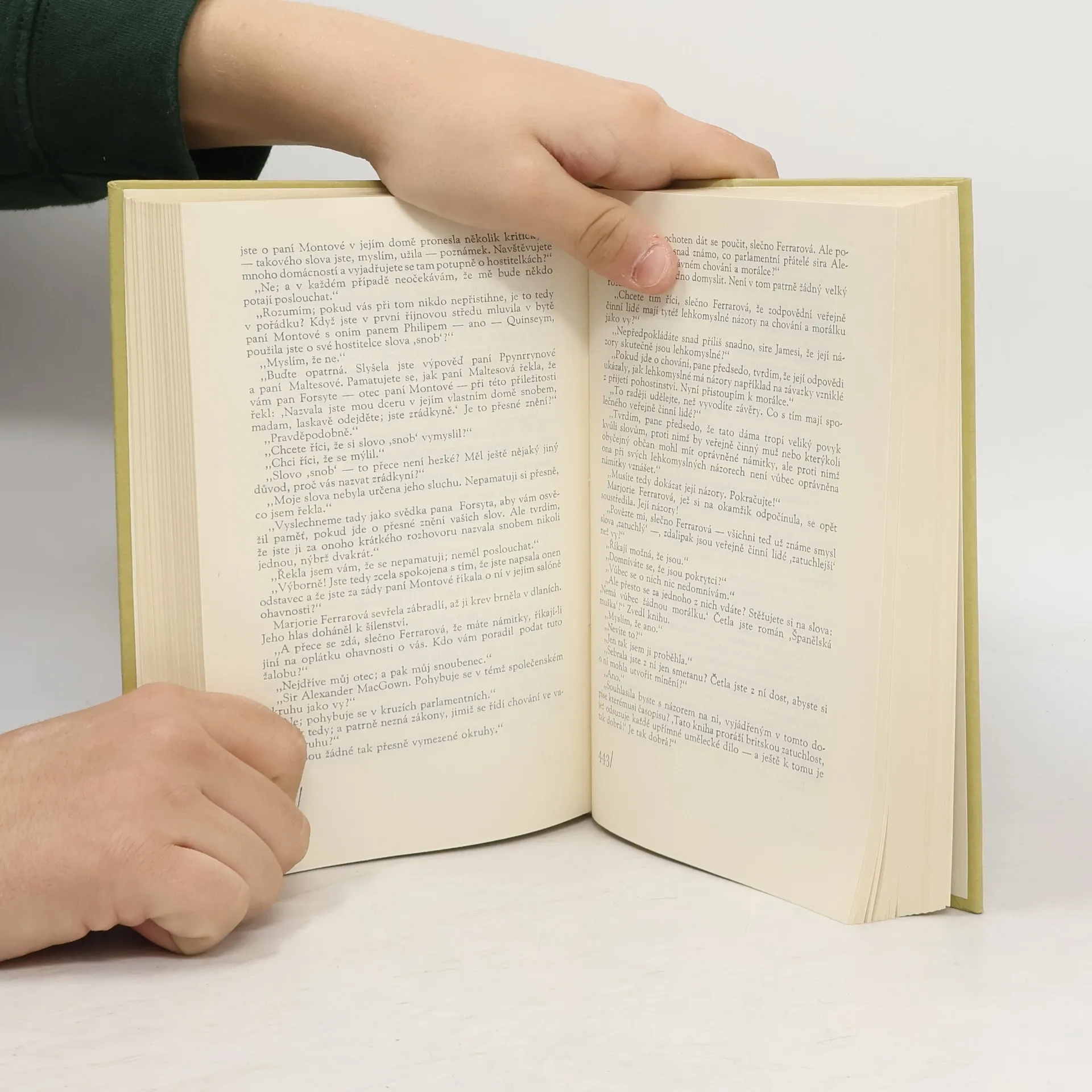 Děj románové trilogie (Bílá opice, Stříbrná lžička, Labutí zpěv), která je pokračováním trojdílné Ságy rodu Forsytů, se odvíjí ve dvacátých letech našeho století a líčí osudy třetí a čtvrté generace Forsytů. Na rozdíl od staré generace, která houževnatě usilovala o zlepšenísvého postavení a rozmnožení rodinného majetku, žijí mladí Forsytové ze dne na den, pachtí se za požitky a novotami a přitom jim však není jasný cíl, k němuž směřují. Trilogie je tedy "ságou" i "komedií" o tom, jak odumírá starý svět pevných hodnot a rodí se svět jiný, který hledá nové hodnoty.